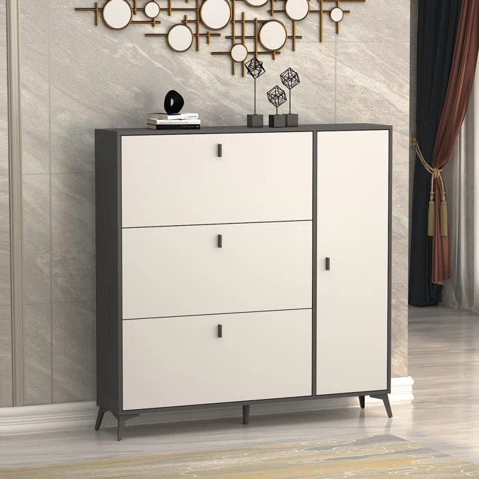 مصنوعة من خشب طبيعي عالي الجودة، مقاوم للرطوبة، ومزودة بمفصلات معدنية متينة لا تصدأ وسهلة الاستخدام.تأتي بلون أبيض ورمادي عصري يضيف لمسة راقية لأي غرفة، سواء مدخل المنزل أو غرفة النوم أو غرفة الملابس.