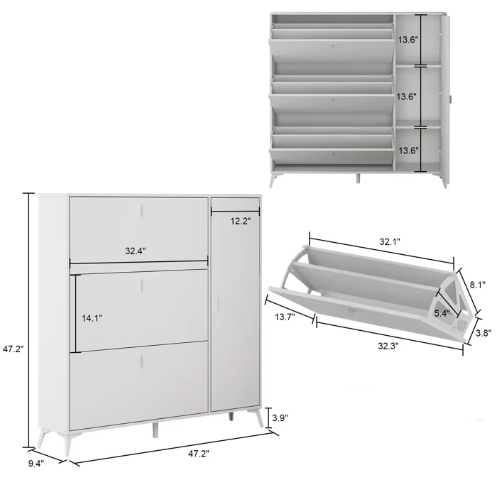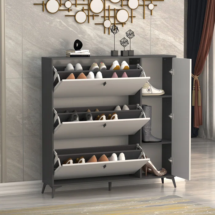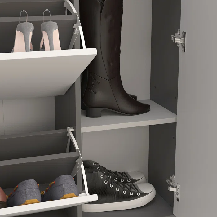 تتكوّن من 3 ضلف قلاب، يحتوي كل منها على صفّين مما يسمح بتخزين ما يزيد عن 18 زوج من الأحذية. كما تحتوي على ضلفة جانبية بـ 3 رفوف واسعة تناسب الأحذية ذات الحجم الكبير أو حتى الإكسسوارات.