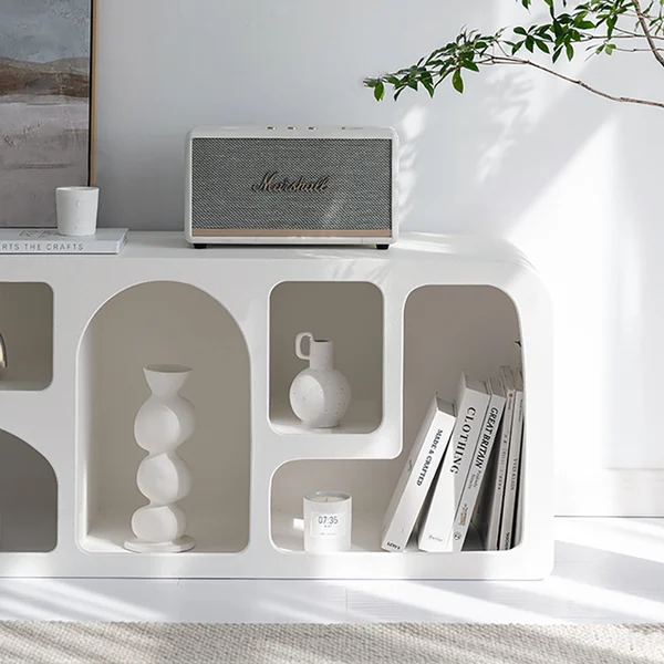 3. استخدام متعدد: يمكن استخدامها كحامل تلفزيون أو مكتبة لتخزين الكتب والمقتنيات بشكل منظم ومرتب.