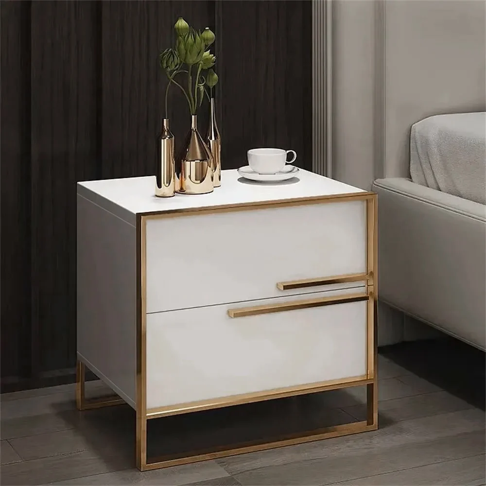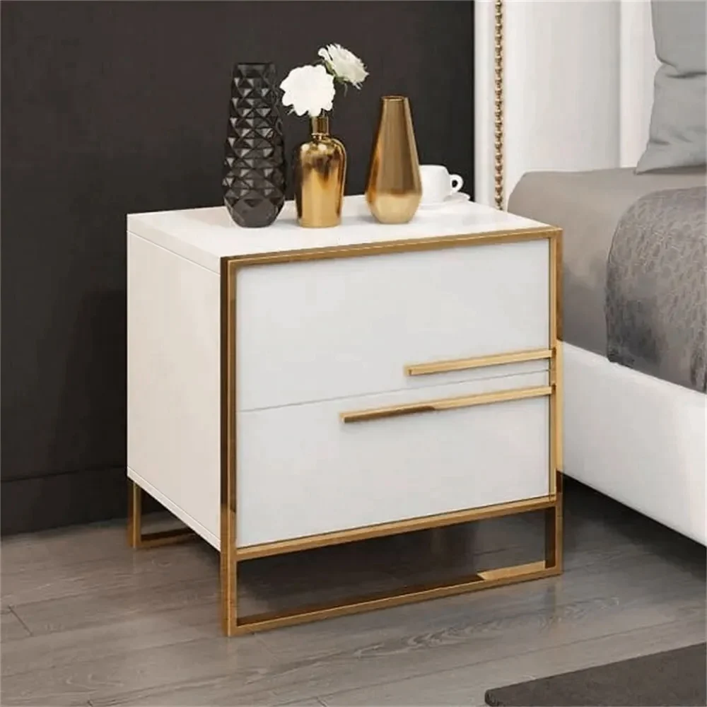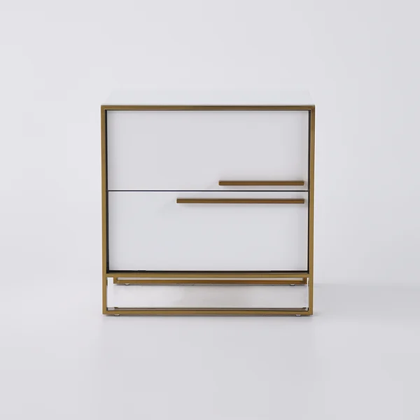 احصل على ترابيزة غرفة نوم أنيقة تجمع بين الجمال الحديث وتصميم الأزياء، مما يضيف لمسة من الفخامة إلى أي غرفة نوم. مزيج الألوان المميز الذي يتضمن سطحًا أبيض وقاعدة ذهبية يضفي لمسة من الفخامة والجمال، مع الحفاظ على جودتها العالية. هذه المنضدة العصرية ستمنح غرفتك مظهرًا جديدًا ومميزًا.