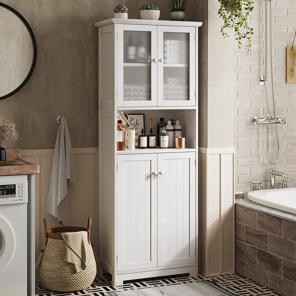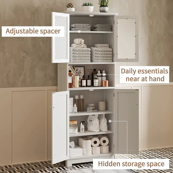 - مساحة تخزين هائلة: تحتوي الخزانة على عدة رفوف قابلة للتعديل لتخزين مستلزماتك الشخصية والمناشف والمنظفات بطريقة منظمة وسهلة الوصول.