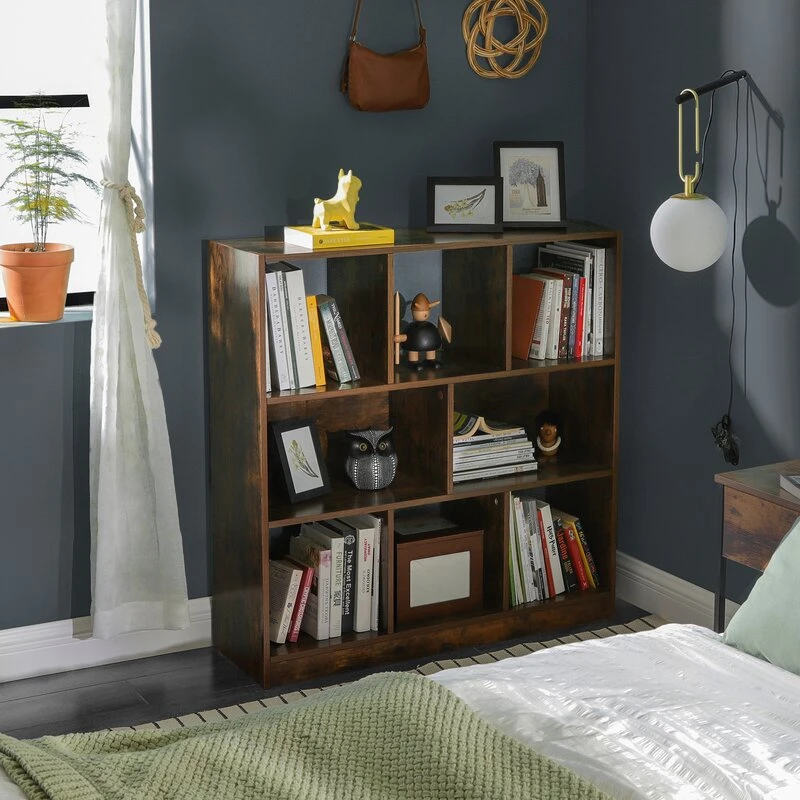 - فتحات ومقصورات متعددة: تحتوي المكتبة على ست فتحات مفتوحة و مقصورتين بألواح خلفية، مما يتيح لك تنظيم الكتب والهدايا التذكارية والديكورات بطرق متعددة.