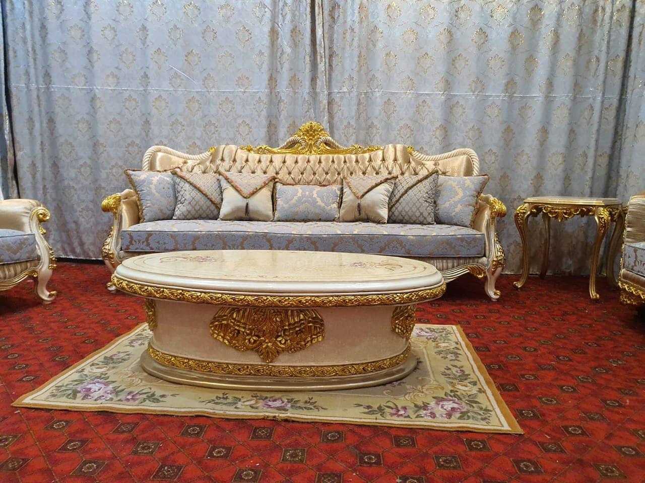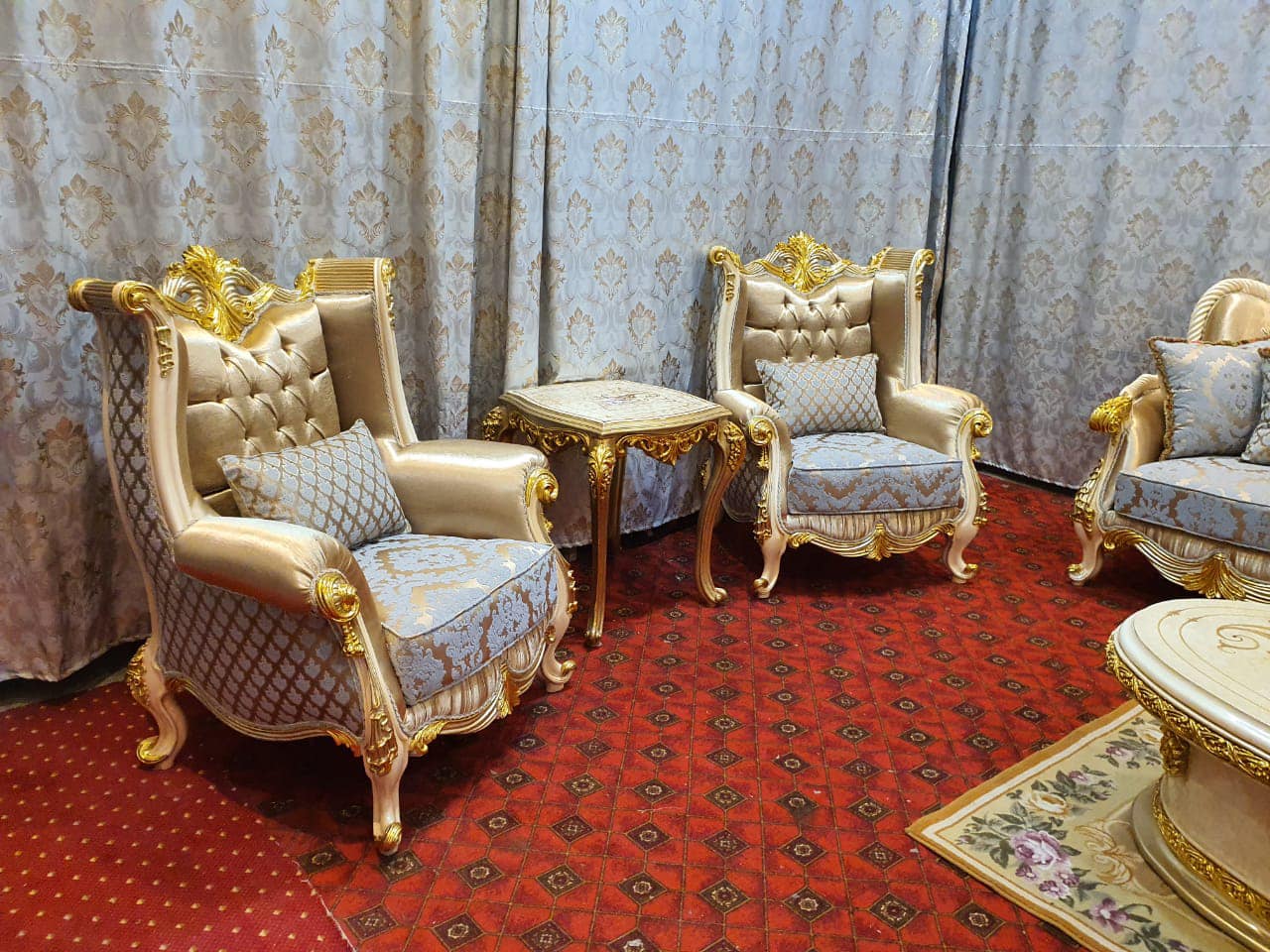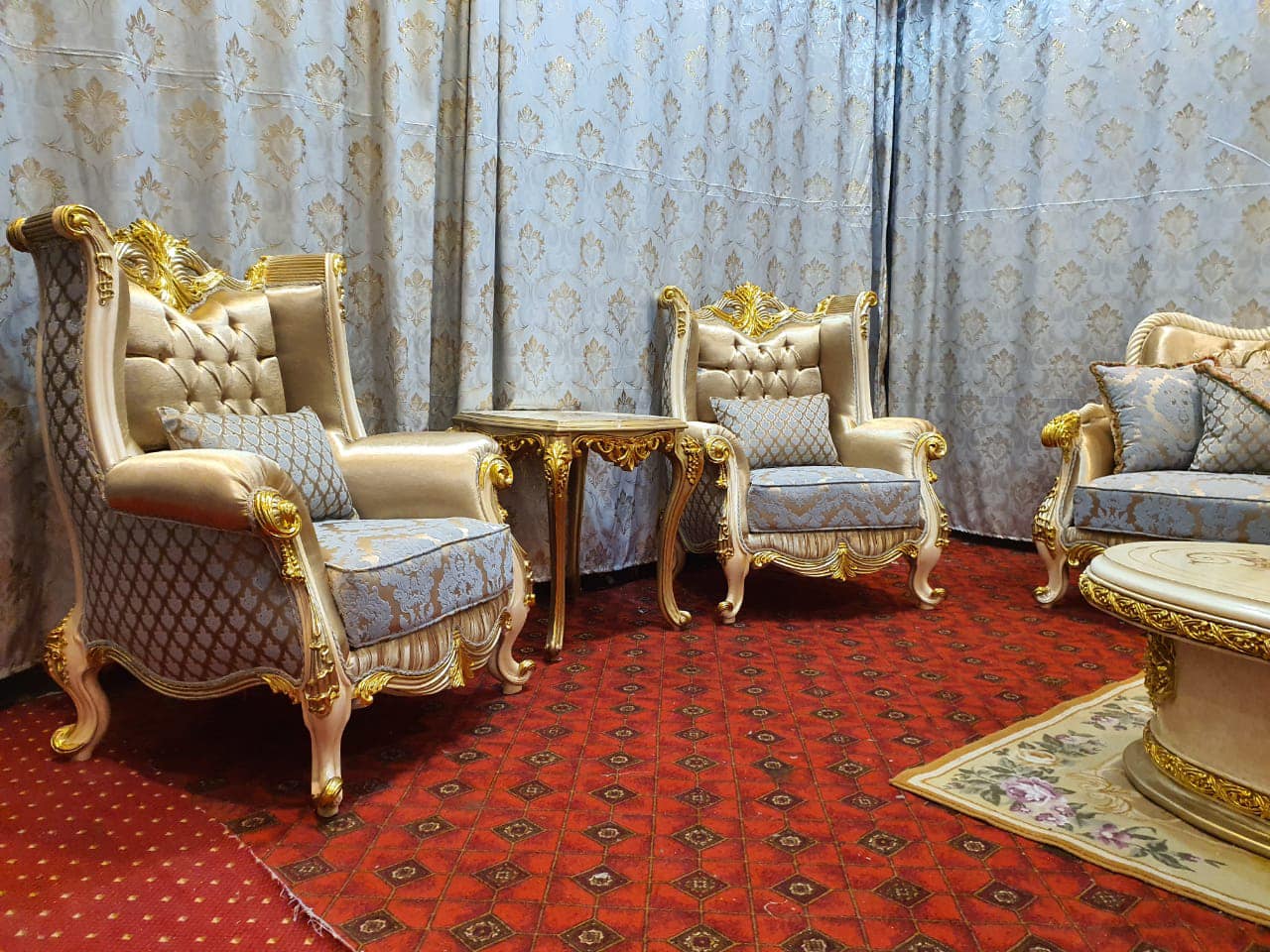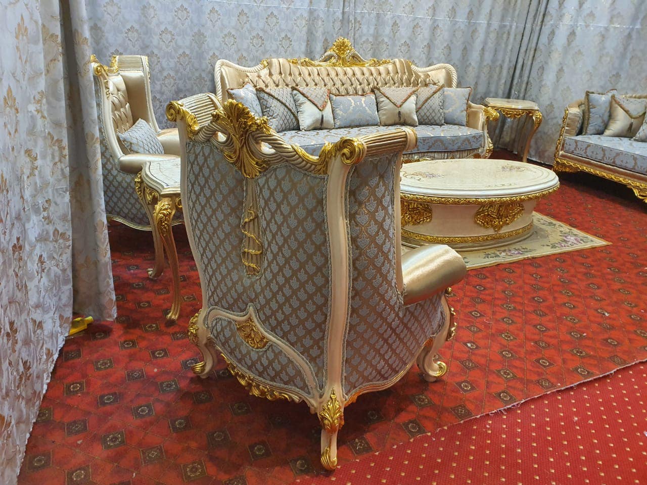 يتميز صالون باروك الكلاسيك المصنوع من الخشب الطبيعي بتصميمه الراقي المستوحى من الطراز الأوروبي العريق، حيث تلتقي الحرفية العالية مع التفاصيل المنحوتة يدويًا لتقديم قطعة أثاث تعكس الفخامة والأصالة في آنٍ واحد. تم تصنيع هذا الطقم باستخدام خشب قوي عالي الجودة لضمان المتانة وطول العمر، ما يجعله خيارًا مثاليًا للاستخدام المنزلي الفاخر وكذلك المشاريع الفندقية والقصور.