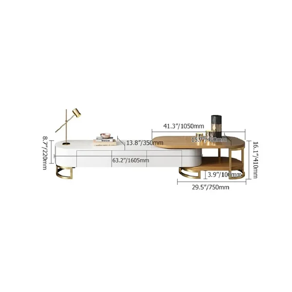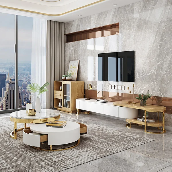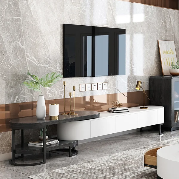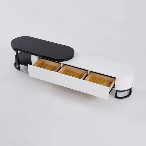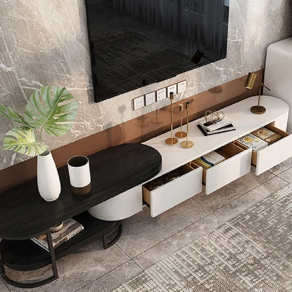 - سطح بيضاوي واسع: يوفر لك مساحة عرض واسعة تتسع لأجهزة التلفزيون وأجهزة الترفيه الأخرى.