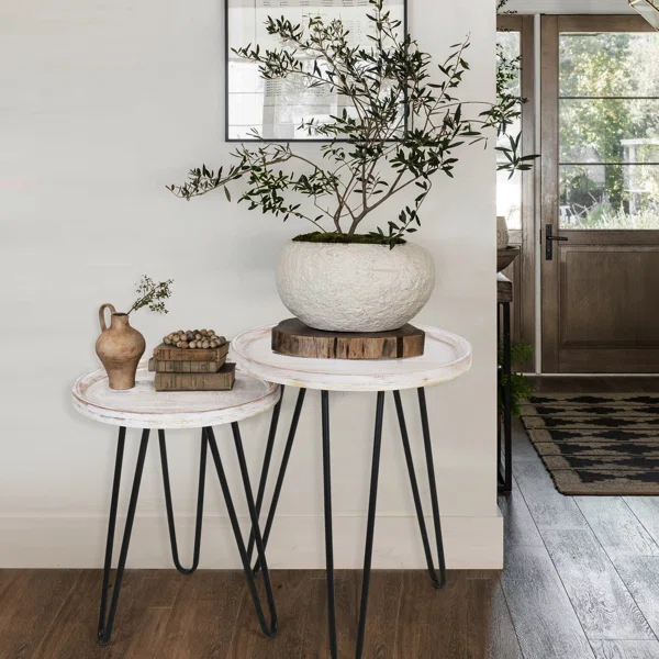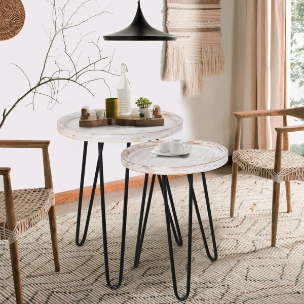 ارتقِ بمساحة معيشتك مع طاولاتنا الجانبية المستديرة المصممة بأناقة وجودة عالية. تجمع هذه الطاولات بين القوة والرقى، حيث تأتي مع سطح خشب صلب مطلي وأرجل معدنية متينة، مما يجعلها إضافة مثالية لمنزلك. تم تصميمها بذكاء لتوفير الراحة والأمان بفضل تصميم الصينية الذي يمنع العناصر من السقوط، مما يعزز السلامة ويضفي لمسة من الأناقة على المساحة.