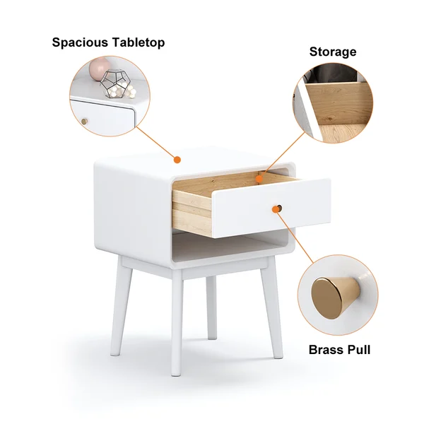- رف واحد ودرج قابل للسحب: تحتوي الطاولة على رف مفتوح لتخزين الأشياء الكبيرة مثل الكتب أو القطع الزخرفية، بالإضافة إلى درج قابل للسحب يسمح بتخزين أغراضك الصغيرة مثل المفاتيح أو النظارات.