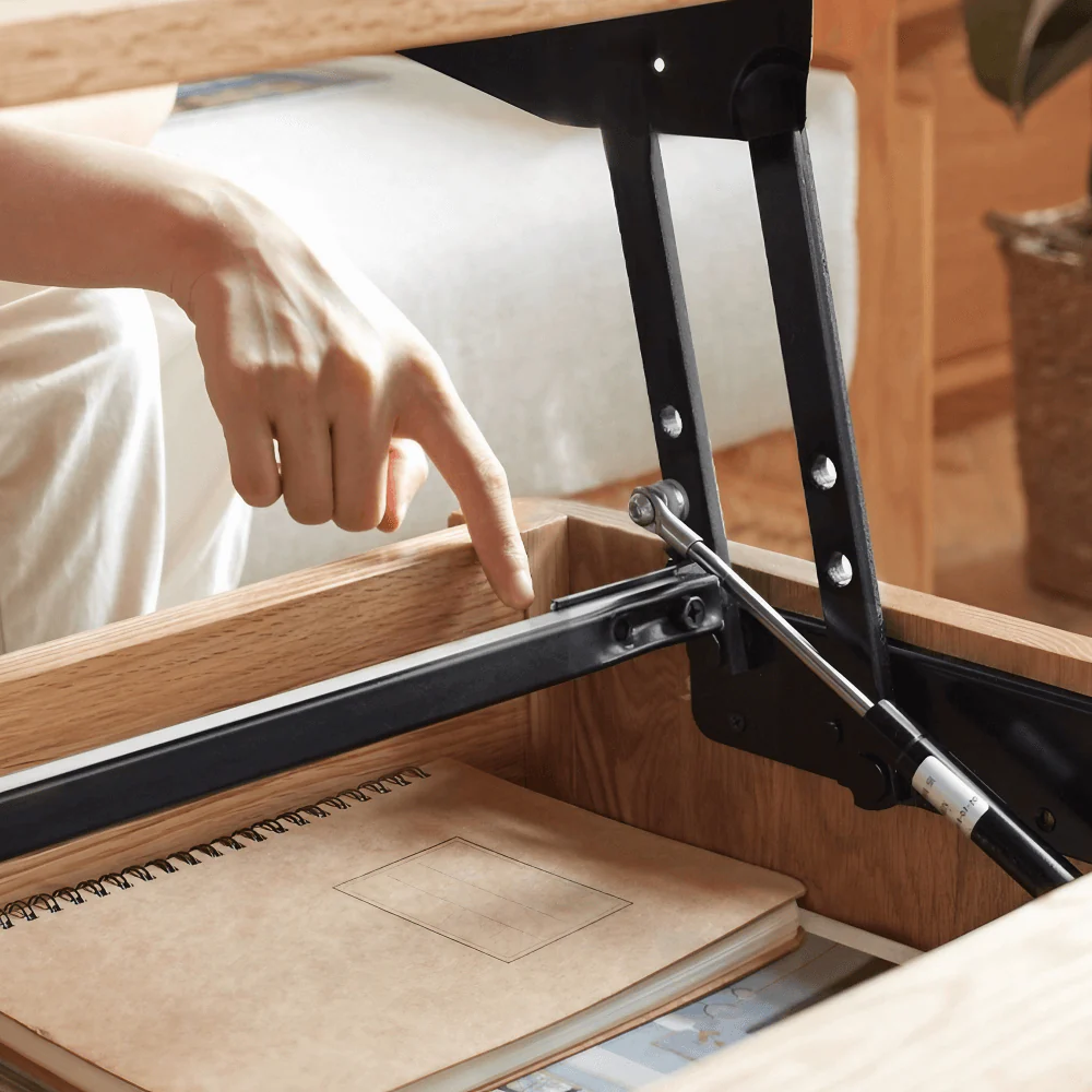 - آلية رفع مبتكرة: تم تجهيز الطاولة بآلية رفع علوية آمنة، مما يسمح لك برفع سطح الطاولة إلى الارتفاع المثالي لتناول الطعام أو العمل. بالإضافة إلى أنها مزودة بميزات حماية اليد لضمان الراحة والأمان.