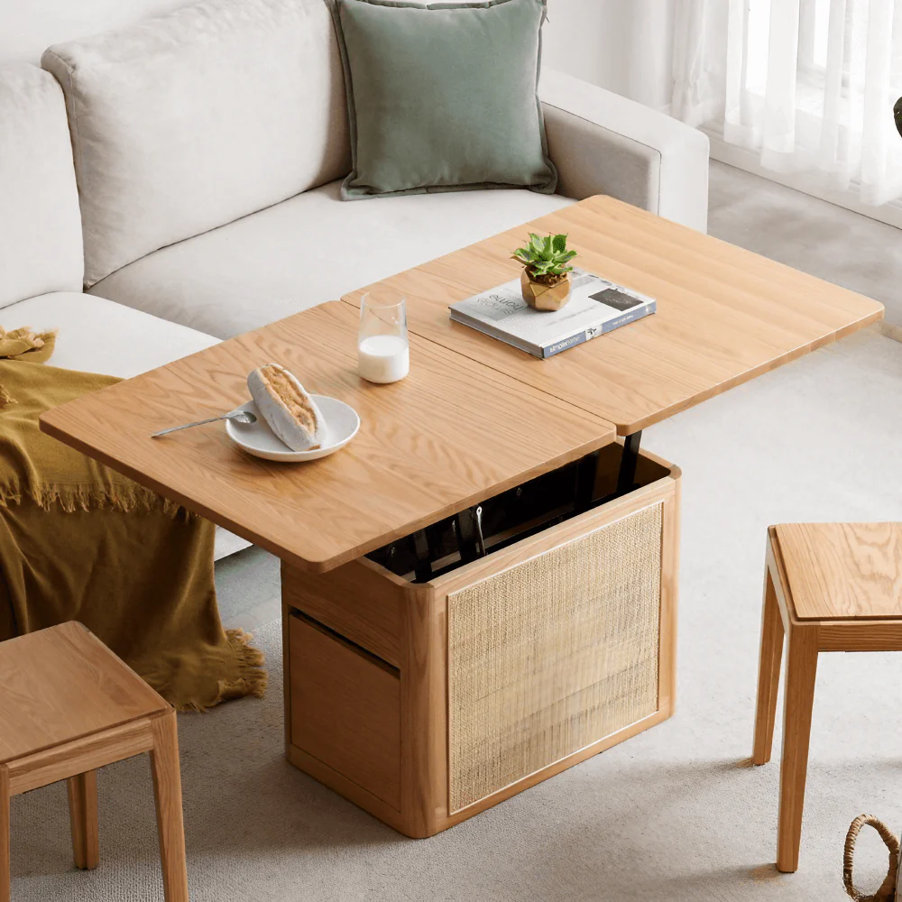 هل يمكن تحويل الطاولة بسهولة من طاولة قهوة إلى طاولة طعام؟ نعم، يمكنك تحويل الطاولة بسهولة من طاولة قهوة إلى طاولة طعام أو مكتب حسب حاجتك بفضل تصميمها المتعدد الاستخدامات.