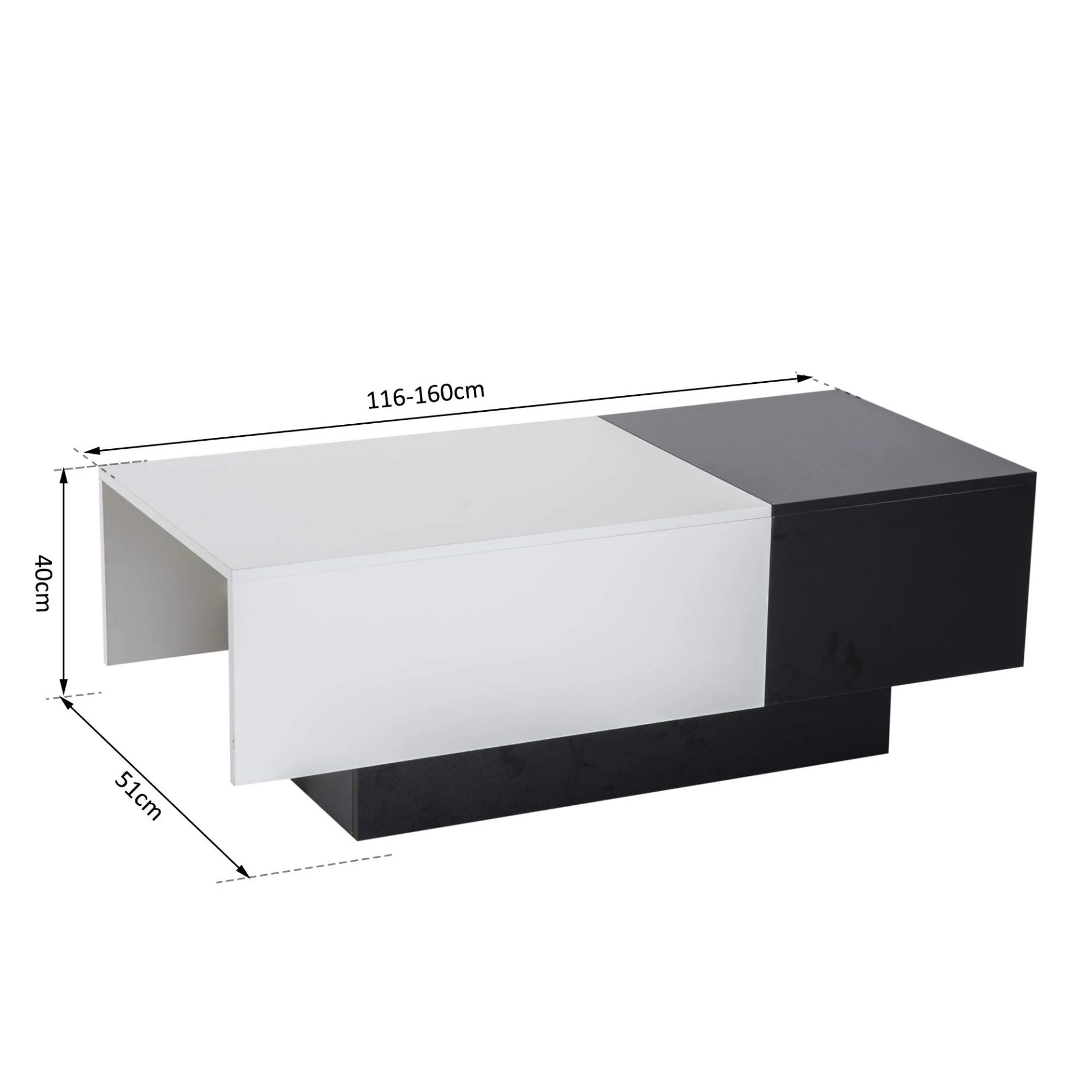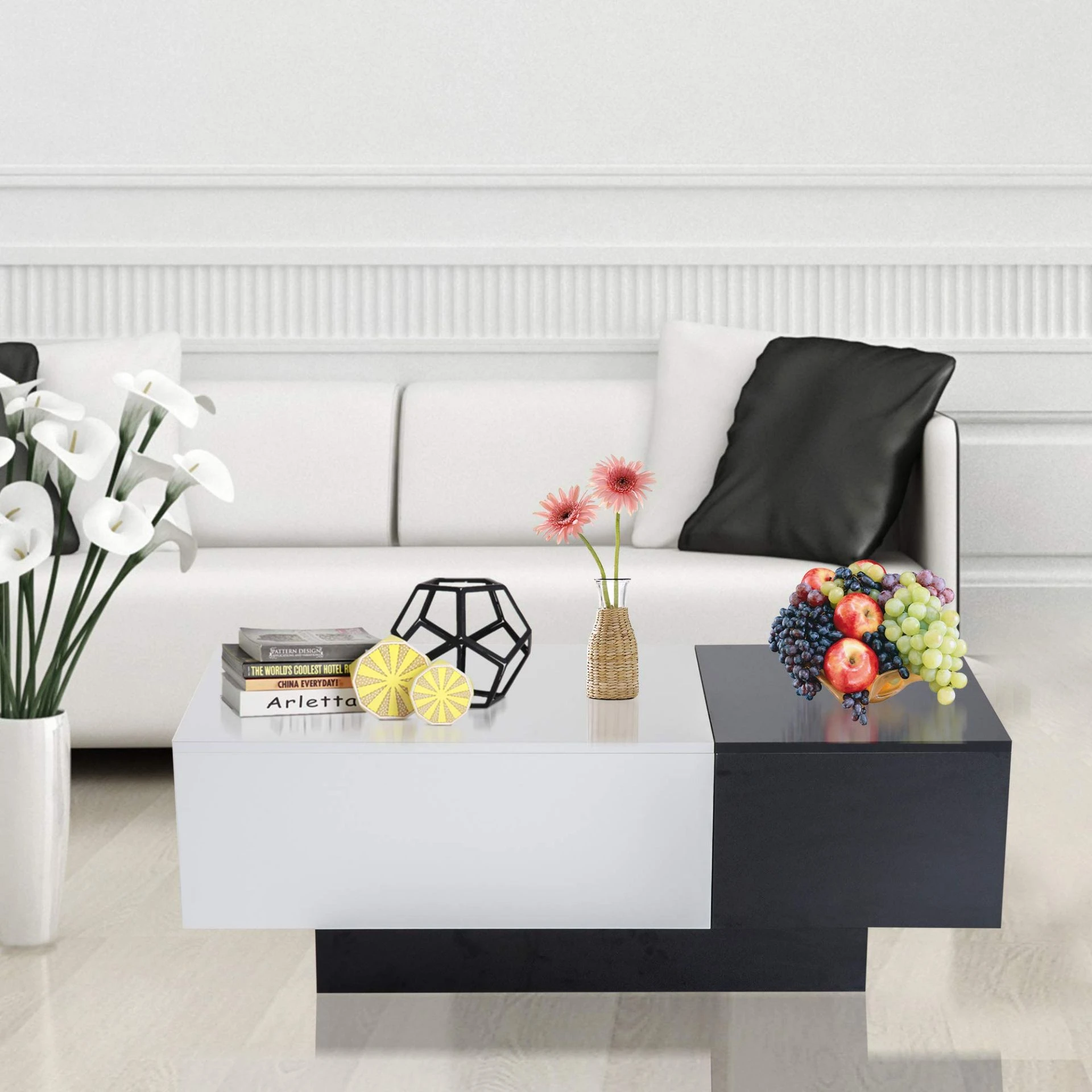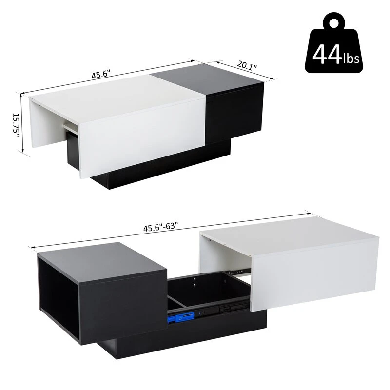 مميزات طاولة قهوة ذات سطح متحرك باللونين الأبيض و الأسود