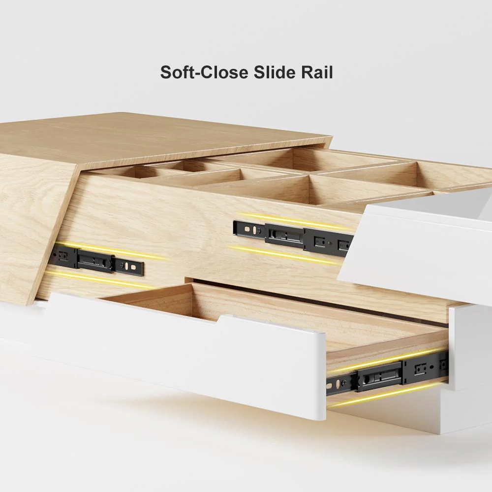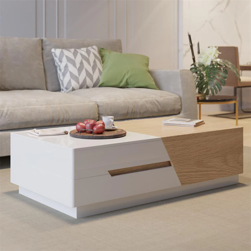 - أدراج داخلية: تضم الطاولة درجين داخليين لتخزين الأشياء الشخصية مثل المجلات، الكتب، أو أجهزة التحكم عن بعد.