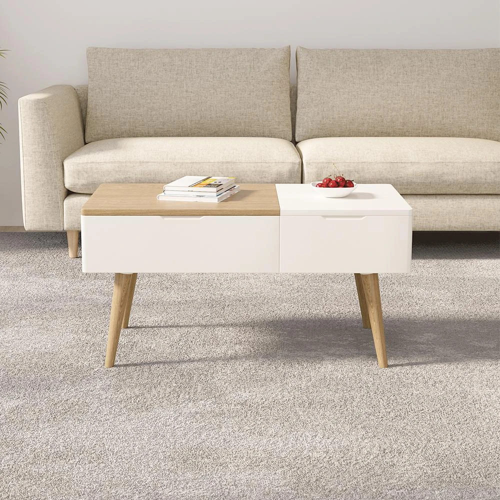 - مساحة تخزين إضافية: تحتوي الطاولة على درج تخزين عملي لوضع أغراضك الشخصية مثل الأجهزة التحكم عن بعد أو المجلات، بالإضافة إلى مساحة تخزين أخرى عند رفع مستوى الطاولة.