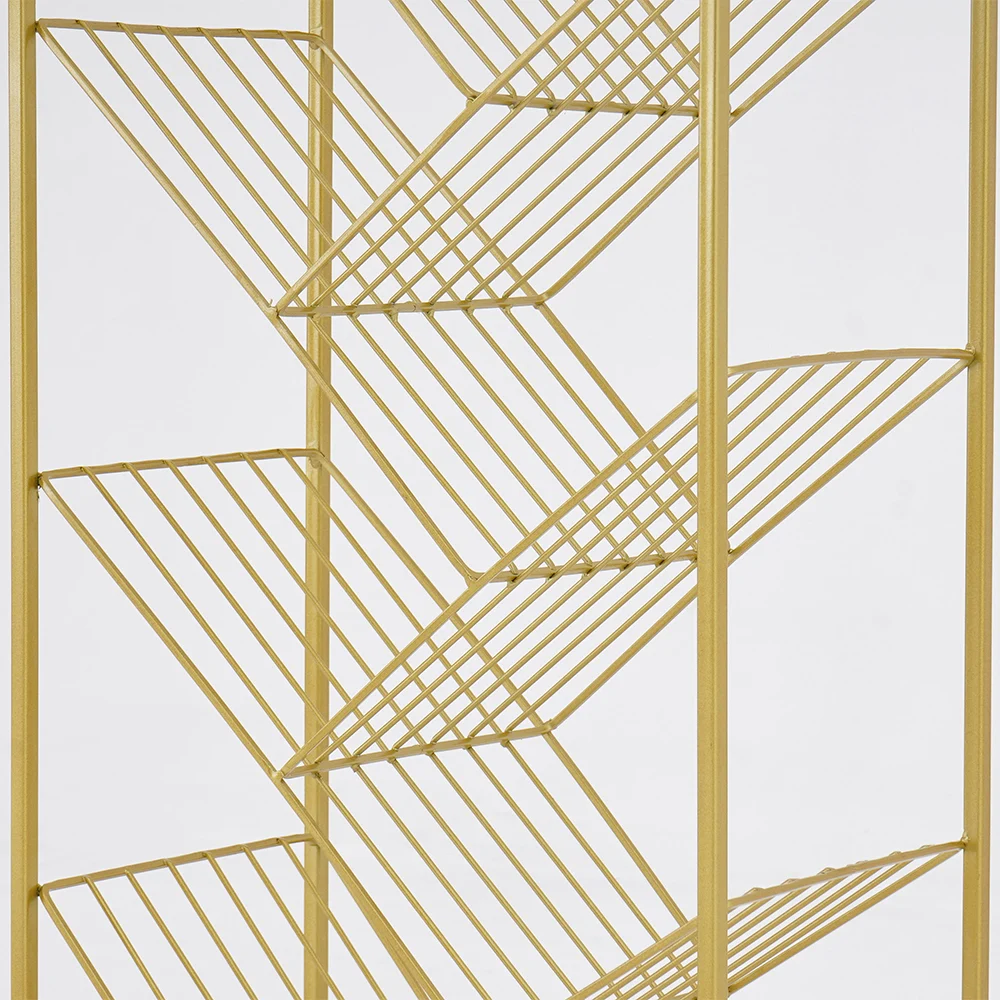 خزانة الكتب فاليو هي قطعة فنية تجمع بين الأناقة و العملية، وهي مثالية لتخزين الكتب والمجلات في غرفة المكتب أو غرفة المعيشة. مصنوعة من المعدن المقوى، هذه الخزانة توفر لك دعمًا وثباتًا قويين، إضافة إلى تصميم مائل للرفوف يمنحها لمسة حديثة ومميزة. اللون الذهبي الأنيق يضيف لمسة من الرقي ويجعلها مناسبة لأي ديكور داخلي.