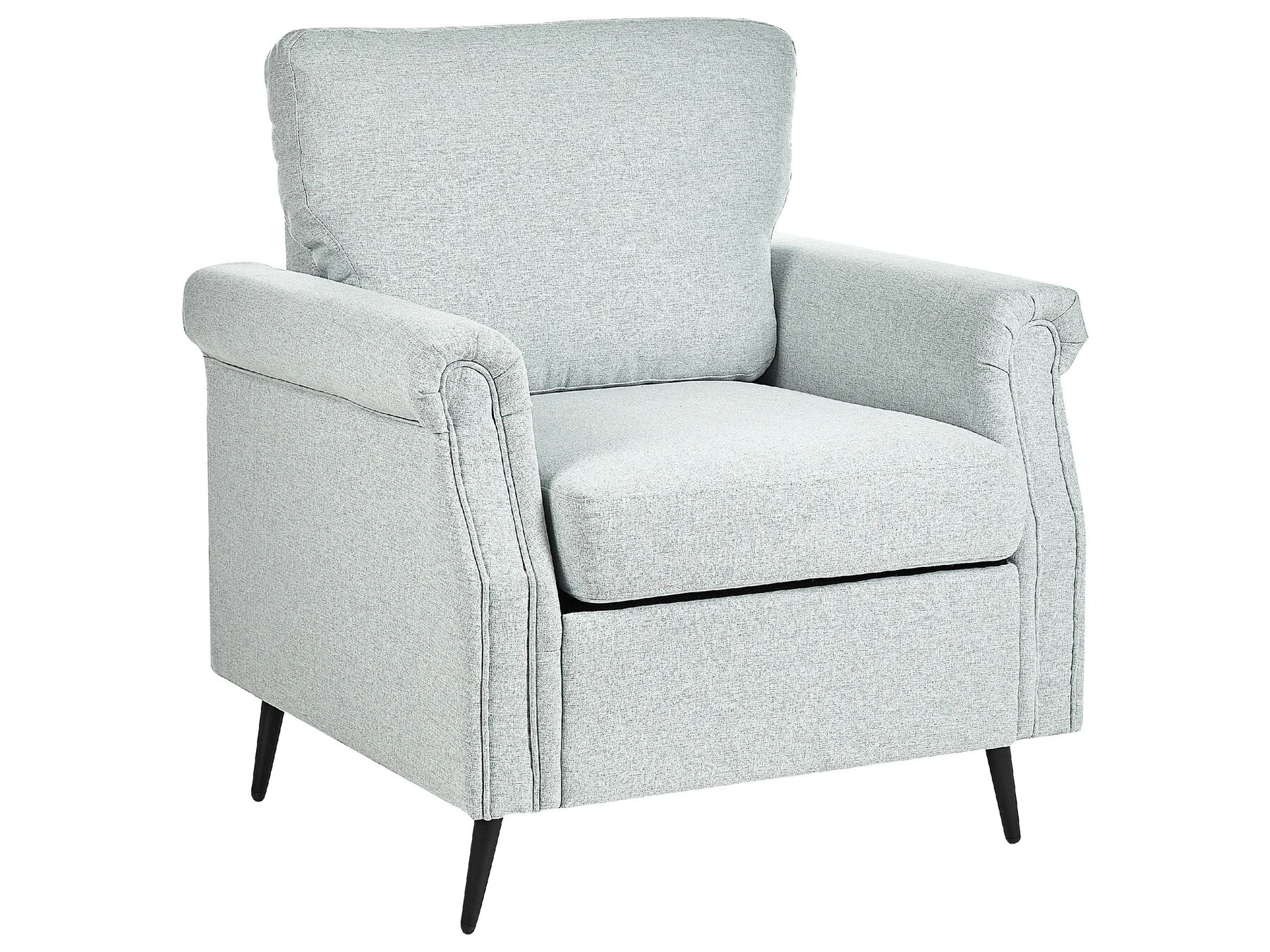 كرسي بذراعين ذات تصميم حديث, مصنوع من الخشب الطبيعى. الكرسى مبطن بالكامل مع غطاء من القماش الناعم مما يضيف مظهرًا جذابًا إلى المساحة, ذات أرجل أستانلس مقاومة للماء و الصدأ. يوفر المقعد المبطن السميك مقاعد مريحة, و يتميز القماش بخصائص تتيح التنضيف بسهولة. أنة كرسى مثالى للحياة اليومية و سيكمل التصميم الفخم للأريكة .مما يضيف مظهرًا جذابًا إلى المكان