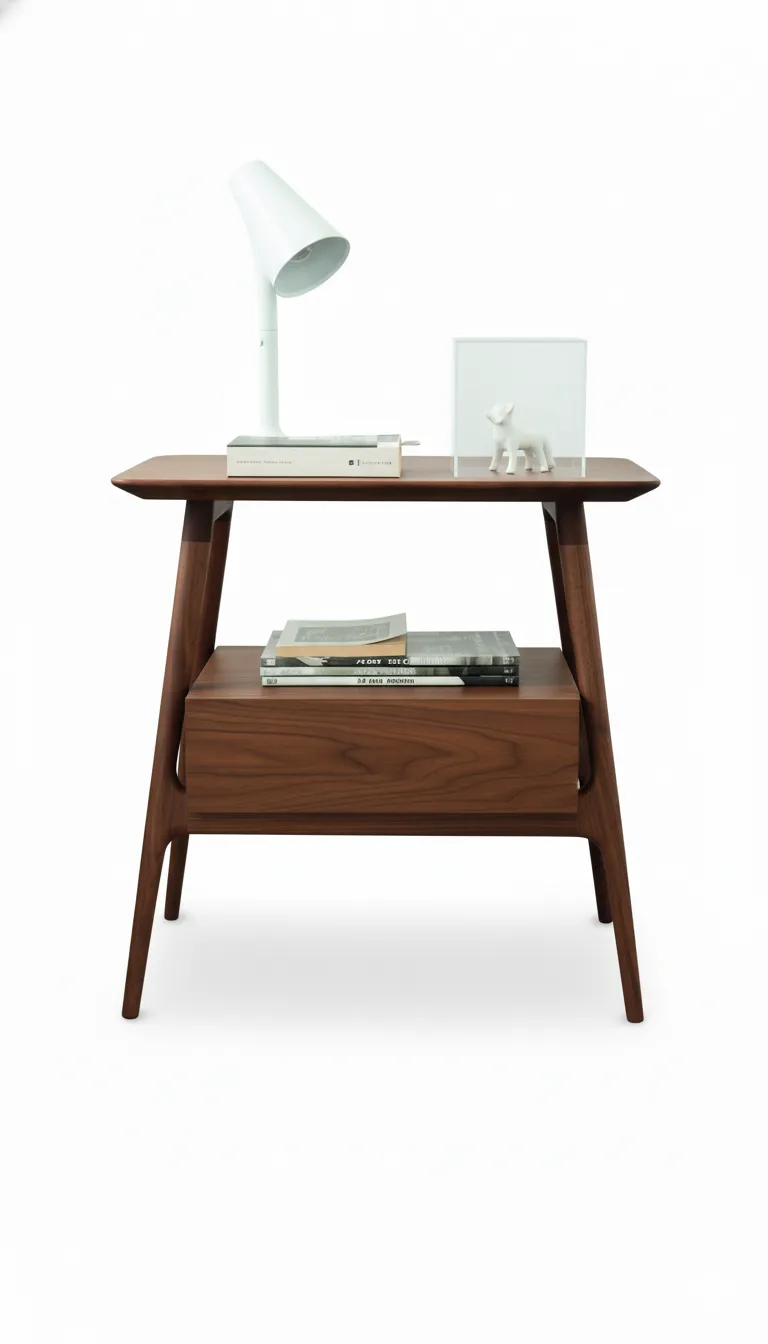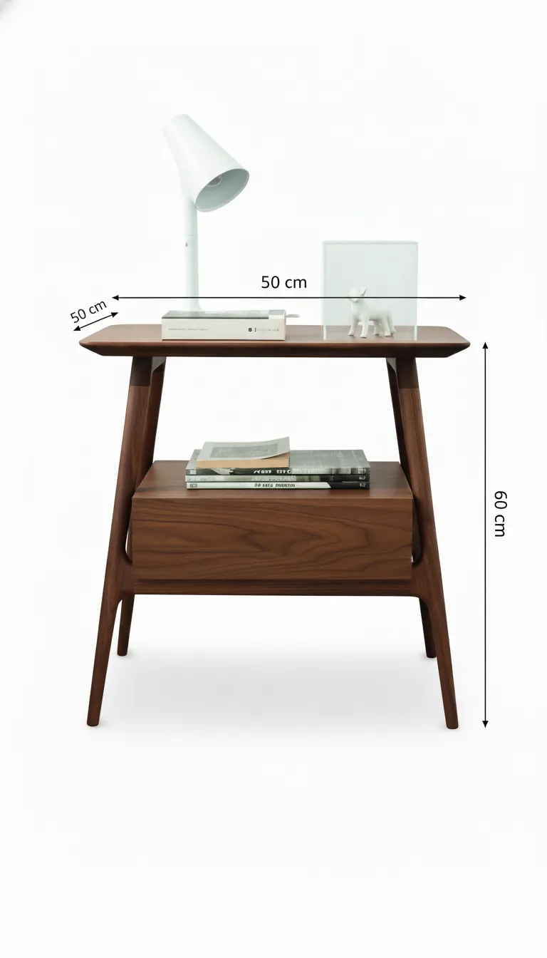 مزود بدرج سفلي لتخزين الكتب أو الأغراض الشخصية، مع مساحة مفتوحة علوية لعرض ديكورات أو إضاءة جانبية. تصميم مناسب لغرف النوم الحديثة أو زاوية قراءة هادئة.