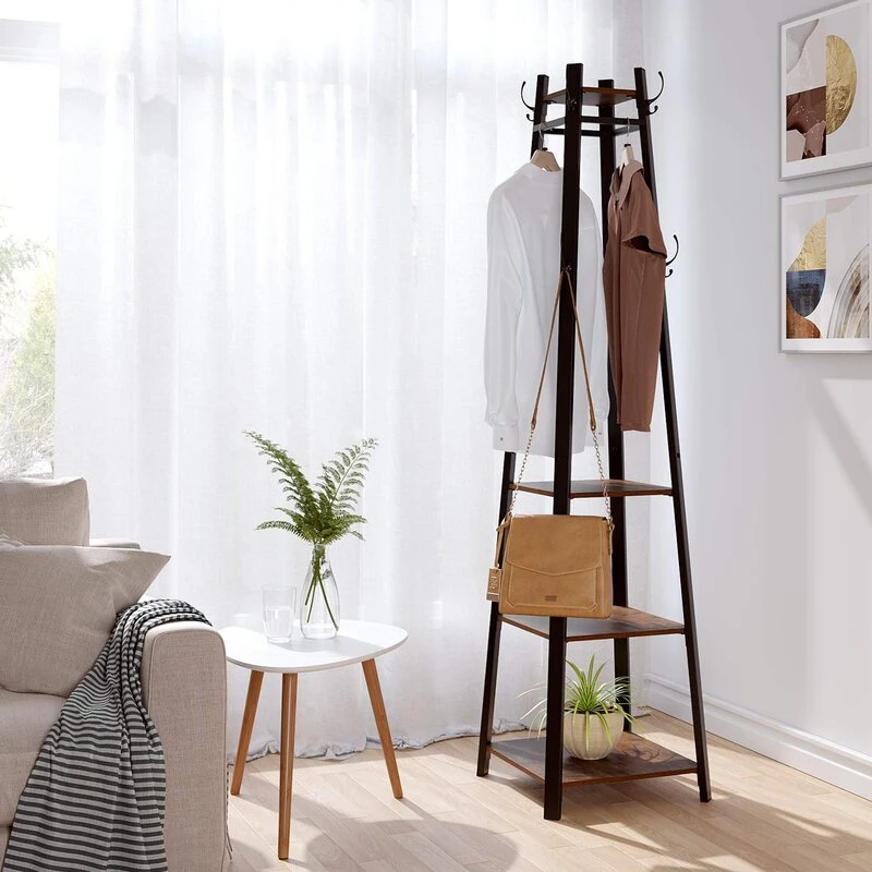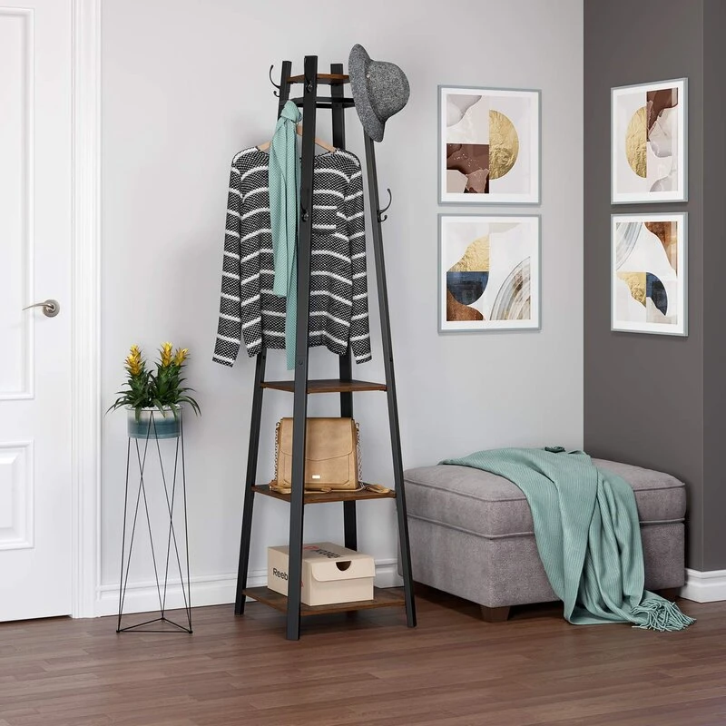 إذا كنتِ بحاجة إلى طريقة بسيطة وفعّالة لتنظيم ملابسك وأغراضك، فإن حامل الملابس المعدني مع 8 هوك و 4 رفوف خشبية هو الخيار المثالي. يتميز هذا الحامل بتصميم عصري يجمع بين الخشب الطبيعي و المعدن القوي، مما يضيف لمسة راقية وكلاسيكية لديكور منزلك. بفضل هذه الميزات، يمكنك ترتيب ملابسك والأغراض الأخرى بسهولة، سواء في غرفة النوم أو بالقرب من المدخل كبديل لخزانة الأحذية.