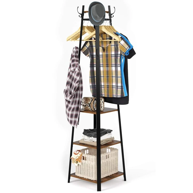 نعم، 8 هوك معدنية قوية يمكنها حمل ملابس ثقيلة مثل المعاطف، بينما توفر الأرفف الخشبية مساحة لتنظيم أغراضك الأخرى.