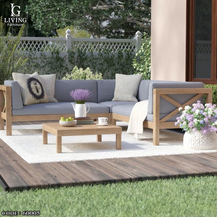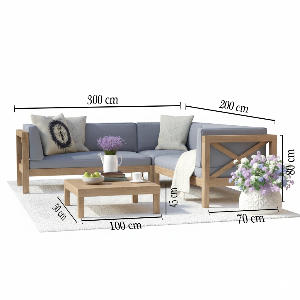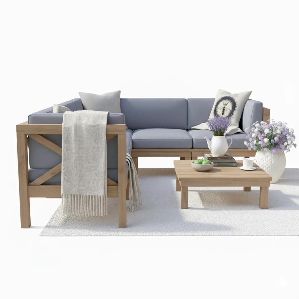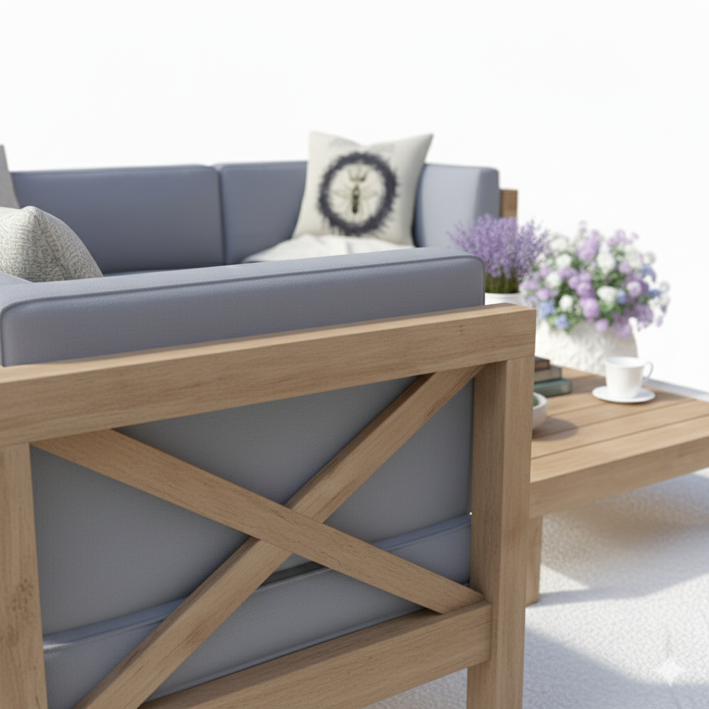 الوسائد الرمادية المصممة بخامات عالية الجودة تضيف لمسة أناقة عصرية، بينما يوفّر الإطار الخشبي المتين ثباتًا ومتانة تدوم لسنوات.
