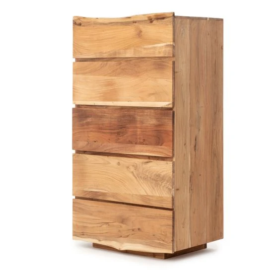 اجعل ديكور غرفة النوم أكثر تنظيمًا وأناقة مع وحدة التخزين فيورا المصنوعة من خشب الطبيعي. تتكون الوحدة من 5 أدراج واسعة، مما يوفر لك مساحة كبيرة لتخزين أغراضك الشخصية بشكل مرتب وسهل الوصول إليه. كما أن مجاري الأدراج المعدنية تضمن لك فتح الأدراج بسهولة وسلاسة.