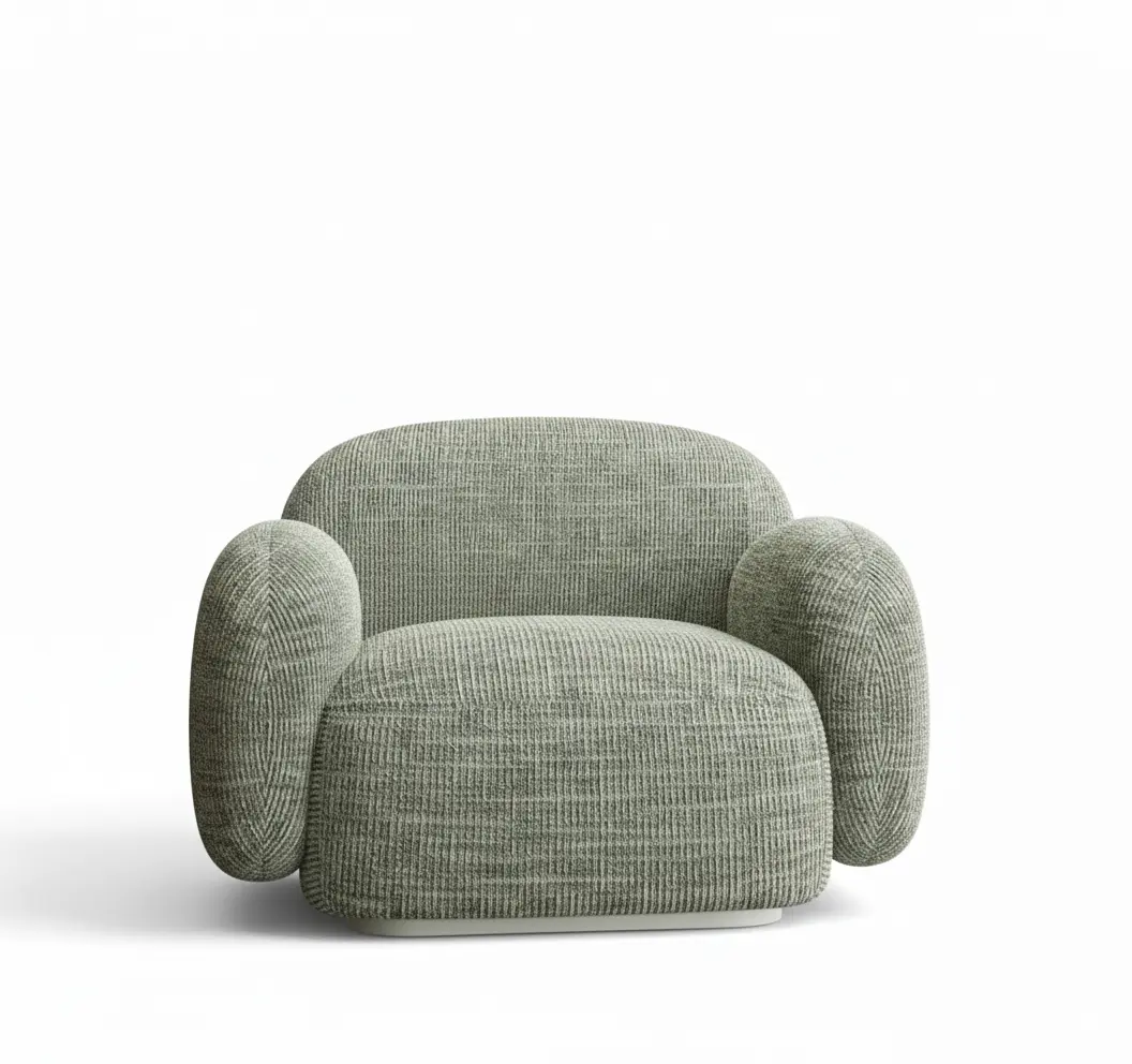 يتميز بخطوط ناعمة ومنحنية تمنح مظهرًا متوازنًا وراحة استثنائية، مع تنجيد فاخر بلون رمادي مخضر يناسب جميع أنماط الديكور.