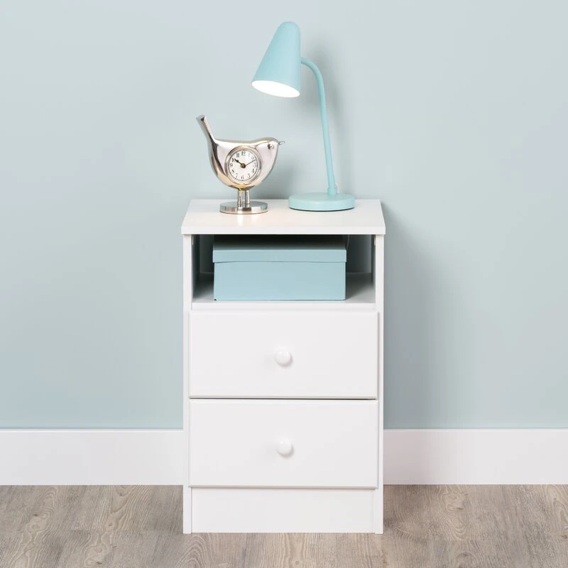 - تخزين عملي: توفر لك الطاولة درجين ورفًا مفتوحًا لتنظيم أغراضك بسهولة.