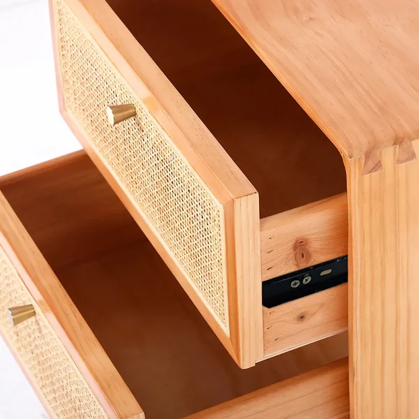 أضف لمسة من الطراز الياباني والكوخ إلى منزلك مع طاولة غرفة نوم كاتيلو، المصممة بعناية لتوفير التوازن المثالي بين الجمال والعملية. تجمع هذه الطاولة بين الخشب الطبيعي والراتان، مما يمنحها مظهرًا عصريًا وفريدًا. مع درجين لتخزين أغراضك، ورف مفتوح، يمكنك بسهولة تنظيم الكتب والمجلات والضروريات اليومية بالقرب منك.