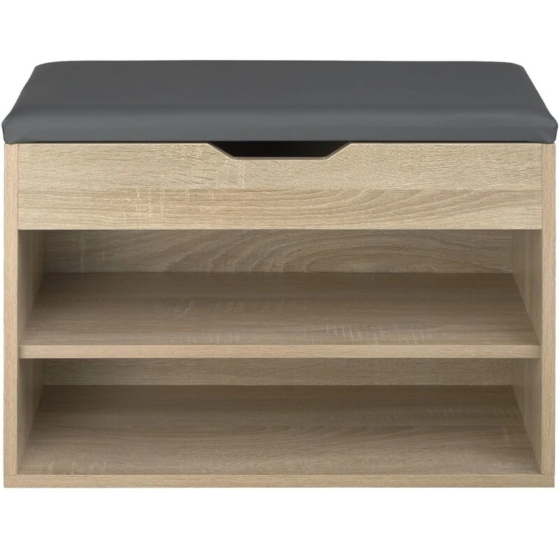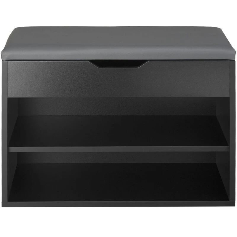 مقعد تخزين الأحذية متعدد الوظائف يمكن وضع ستة أزواج من الأحذية على رفين مفتوحين لرف الأحذية الحديث ، بينما يمكن تخزين الأوشحة والقفازات والقبعات في الجزء العلوي بغطاء مفصلي.