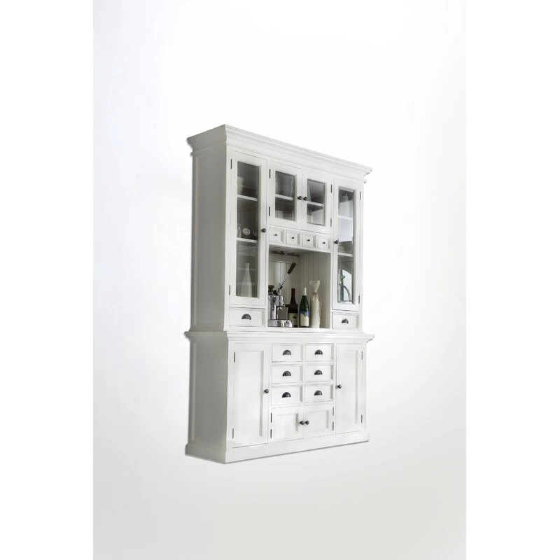 • يحتوي القفص العلوي على أربعة أبواب خزانة ذات ألواح زجاجية وستة أدراج إضافية، أربعة منها صغيرة ومثالية لحمل الشموع.