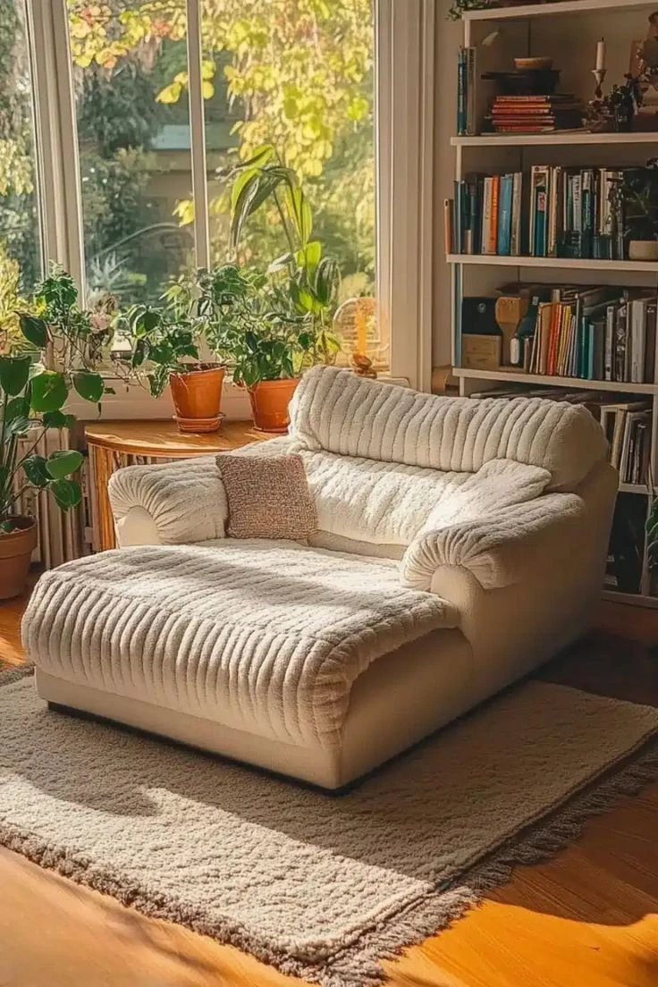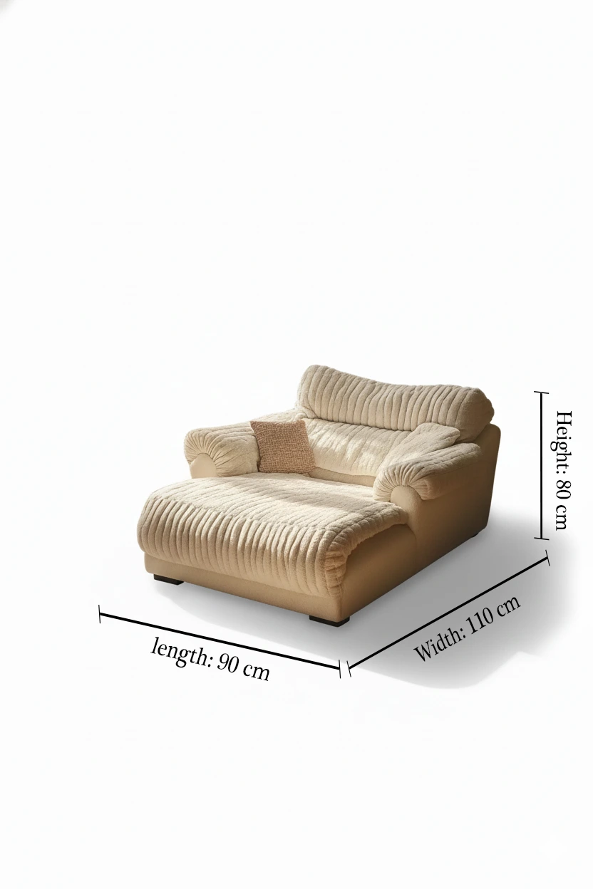 تصميمه العصري يجمع بين الأناقة والعملية، بمقعد عريض يسمح لك بالاستلقاء بحرية تامة، مما يجعله مثاليًا للاسترخاء بعد يوم طويل أو للقراءة أمام النافذة.