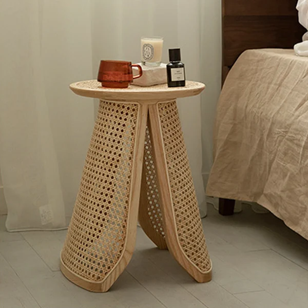 - تصميم طبيعي وأنيق: تتميز الطاولة بتصميم عصري وطبيعي مع سطح خشبي أملس من الخشب الطبيعي و قوام الروطان الذي يمنحها طابعًا مميزًا.