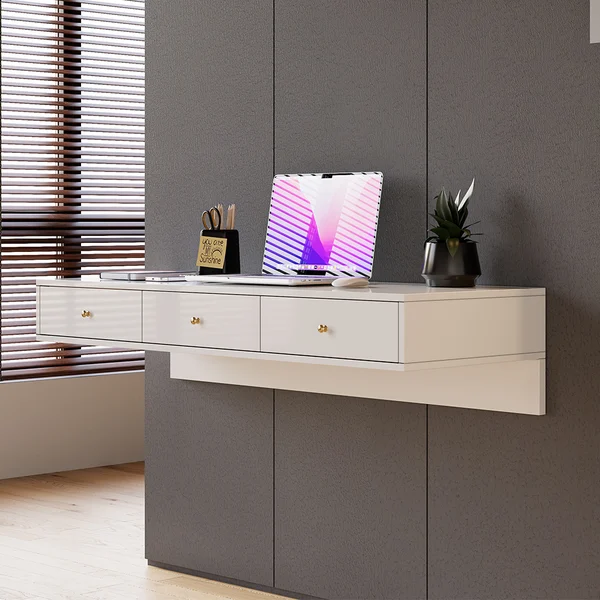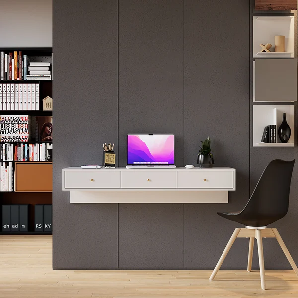 هل يناسب المكتب الغرف الصغيرة؟ بالتأكيد، بفضل تصميمه المثبت على الحائط فهو مثالي للمساحات الضيقة والمكاتب المنزلية الصغيرة.