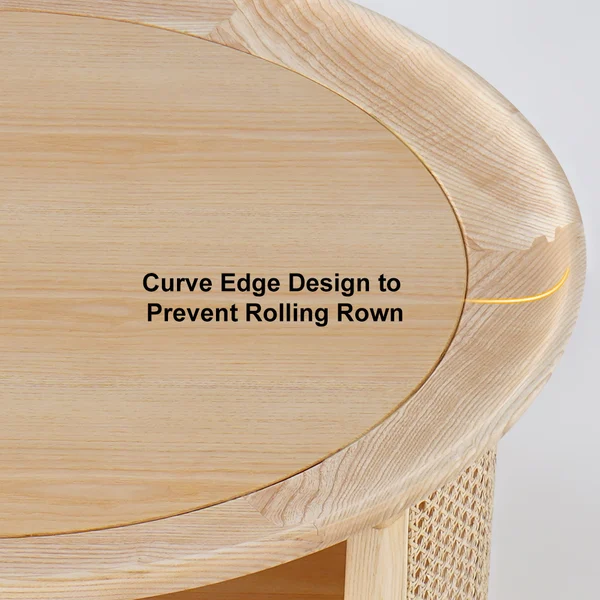- حافة منحنية: الطاولة مزودة بحافة منحنية لمنع التدحرج للأسفل وضمان السلامة عند وضع الأغراض على الطاولة.