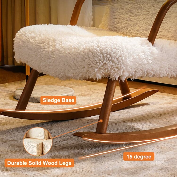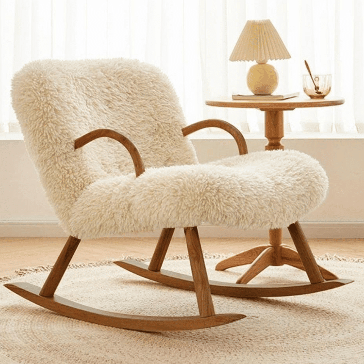 كرسي هيس الهزّاز بتنجيد شيربا ناعم قاعدة من الخشب الطبيعي