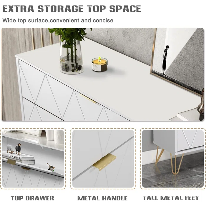 - المقابض ذهبية اللون ومن خامات معدنية عالية الجودة.