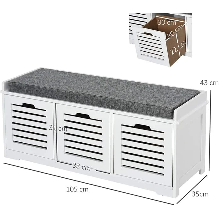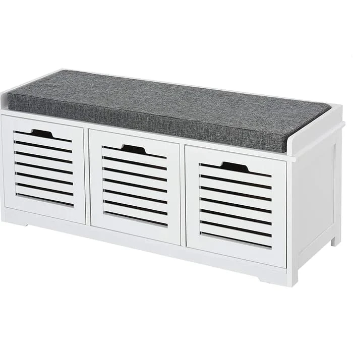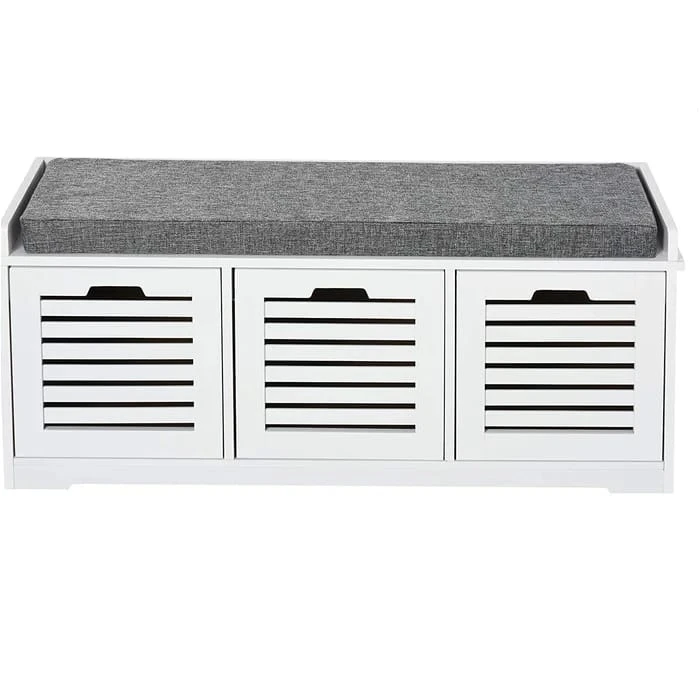 سيكون كلاسيلي مقعد تخزين الأحذية قطعة الأثاث الأفضل في غرفتك، إذ يتمتع بتصميم جذاب ومعاصر كما يوفر مساحة تخزين كبيرة ومنسقة من خلال ثلاثة أدراج مكعبة الشكل تتسع لتخزين الأحذية او غيرها. كما انه مزود بمقعد مبطن بالاسفنج من أجل توفير الراحة أثناء تغيير الحذاء.