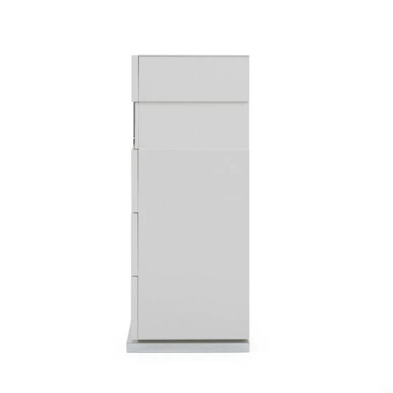 - مقابض فريدة: صُممت مقابض الأدراج لتكون على الجانب الأيسر لكل درج، مما يعطي شكلاً مميزًا وأنيقًا للوحدة.