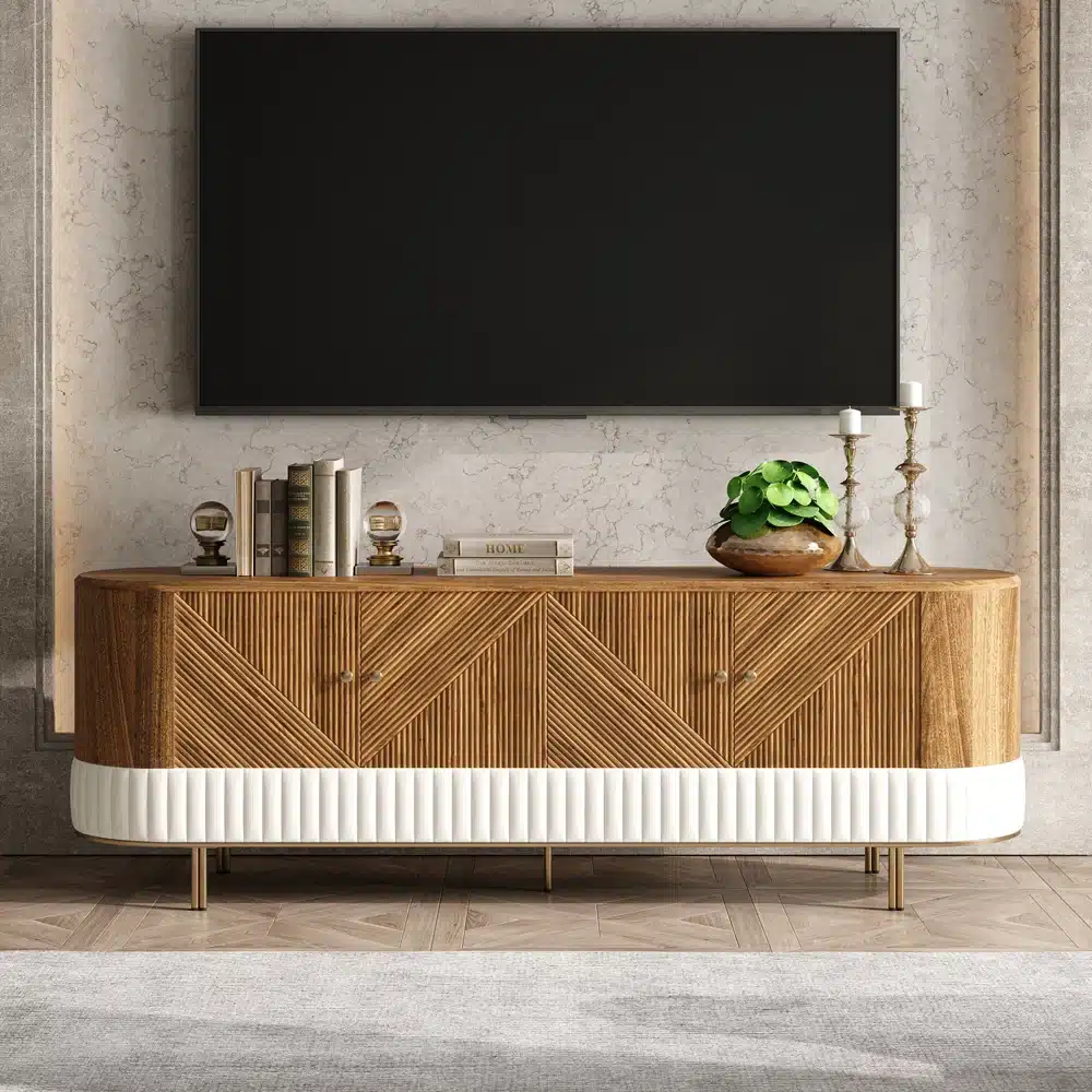 - طقم متكامل لغرفة المعيشة: وحدة تلفزيون + طاولة قهوة + طاولة جانبية لمظهر متناغم.