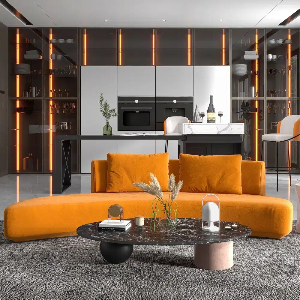 هل اللون البرتقالي يتماشى مع الديكورات المحايدة؟ نعم اللون البرتقالي يضيف لمسة جريئة تتناغم مع الألوان المحايدة كالرمادي، الأبيض، أو البيج، مما يمنح توازنًا أنيقًا.