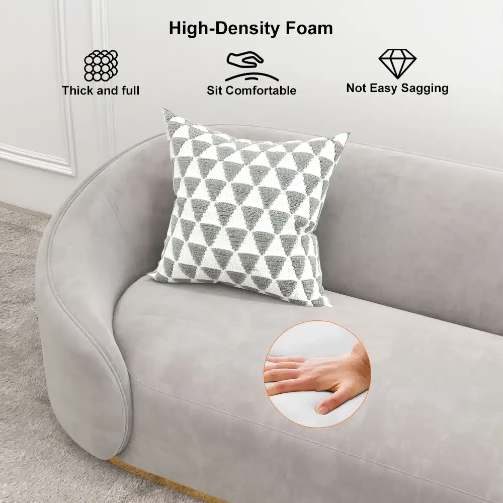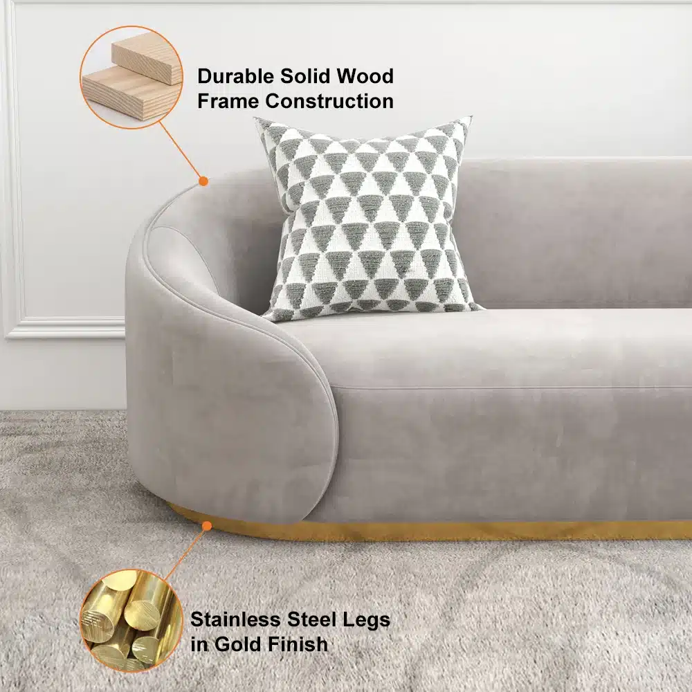 مصنوعة من الخشب الطبيعي المتين الذي يضمن استدامة مدى الحياة، ومدعومة بـ إسفنج عالي الجودة والكثافة لتوفير راحة فائقة ودعم مثالي. تكتمل روعة التصميم مع قاعدة ذهبية فاخرة تمنح الكنبة مظهرًا راقيًا يجذب الأنظار، بينما يضفي القماش الفاخر إحساسًا بالترف والنعومة.