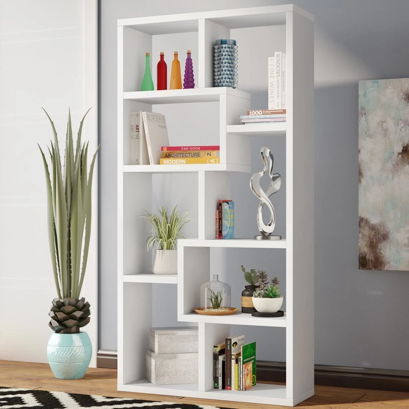 كينلو مكتبة كتب بتصميم هندسي جذاب هي قطعة أثاث فريدة تجمع بين الجمال العصري والوظيفة العملية. مع ثمانية أرفف حجرية موزعة بشكل معماري مميز، توفر هذه المكتبة مساحة عرض واسعة لصفوف من الكتب، إطارات الصور، النباتات، والتحف المجمعة. تصميمها الهندسي العصري يجعلها قطعة مثالية لإضافة لمسة مميزة لأثاث منزلك أو مكتبك.
