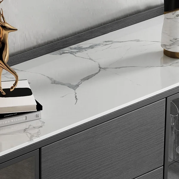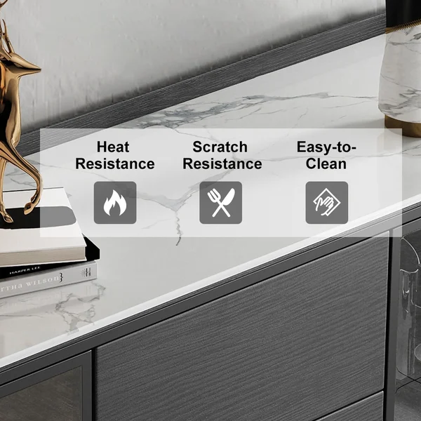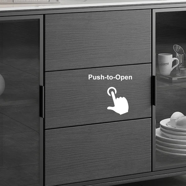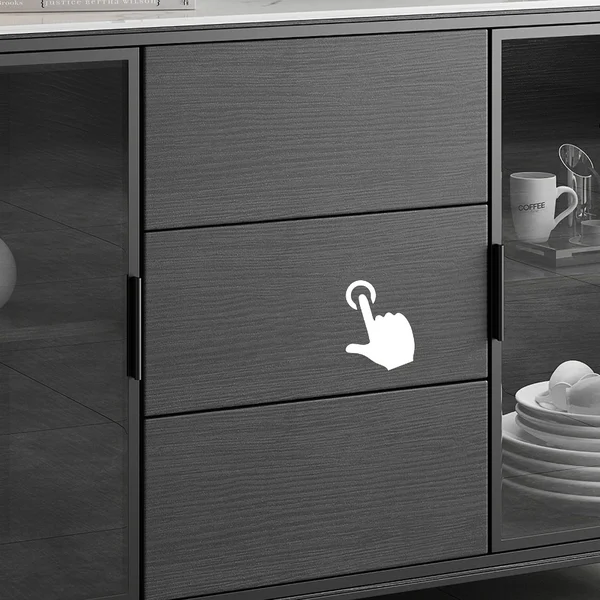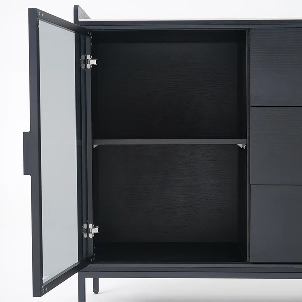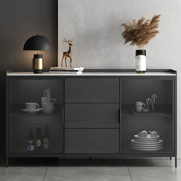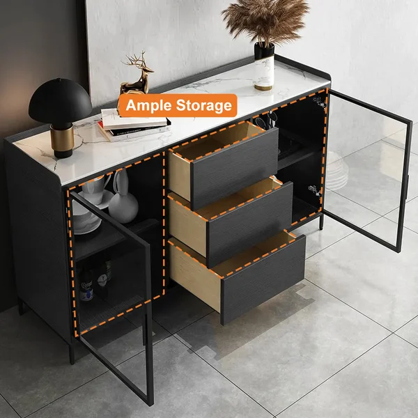 تتميز ببابين، ويمكن أن تكون مثالية لتخزين بياضات الطعام والأطباق ومجموعة أدوات المطبخ الأخرى بينما تسمح 3 أدراج بتخزين إضافي. بالإضافة إلى ذلك، فهو يتميز بتصميم الزجاج المقسى لسهولة رؤية العناصر التي قمت بتخزينها.