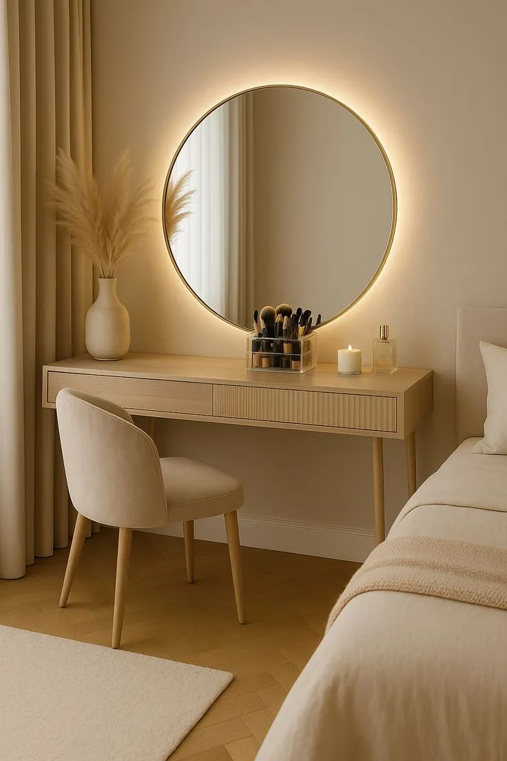 تسريحة لوريمانا تجمع بين البساطة العصرية والأناقة الراقية، بتصميم هندسي انسيابي وإضاءة خلفية LED دافئة تضيف أجواء هادئة ومريحة عند الاستخدام. مصنوعة من خشب طبيعي عالي الجودة وتشطيبات ناعمة تمنحها مظهرًا فاخرًا يتناغم مع مختلف أنماط الديكور الحديث.