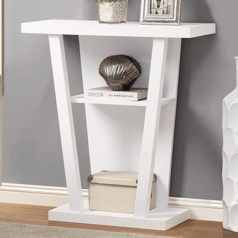 طاولة كونسول لورين هي قطعة مثالية لإضافة لمسة عصرية وأنيقة إلى أي مساحة. مصممة من خشب مصنع ومطلية باللون الأبيض، تأتي الطاولة بتصميم عصري يضيق تدريجيًا في الأرجل نحو الأسفل، مما يعزز من جمالها العصري. يمكن استخدامها لعرض الكتب، الصور أو حتى كحامل لتلفزيونك في غرفة الجلوس.