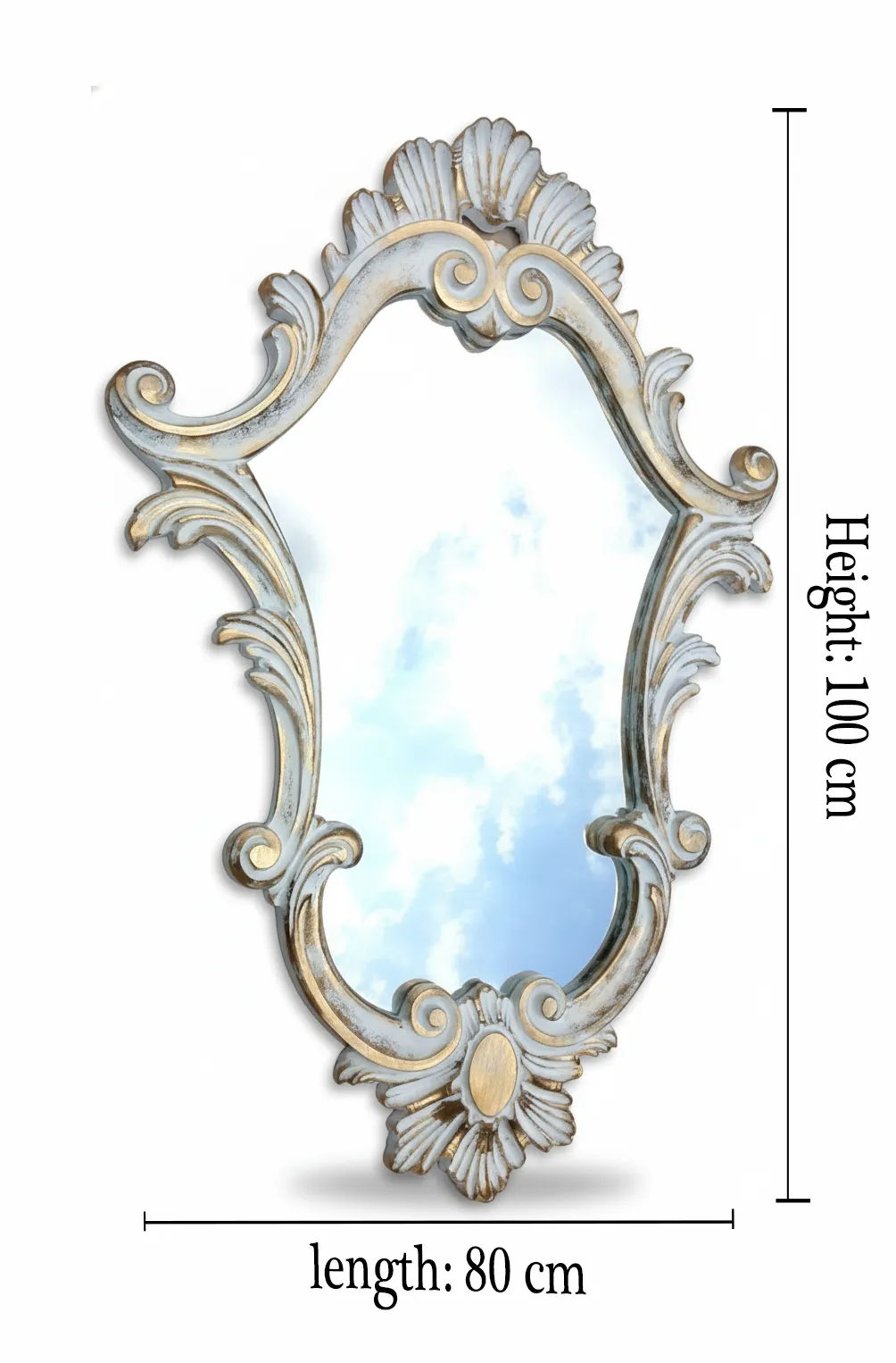 الإطار مصنوع بخامات عالية الجودة مع تشطيب أنيق يبرز الزخارف الدقيقة، بينما يوفر سطح المرآة انعكاسًا واضحًا يعزز الإضاءة الطبيعية ويمنح إحساسًا باتساع المكان. اختيار مثالي لعشاق الديكور الكلاسيك والتصميمات الملكية الراقية.