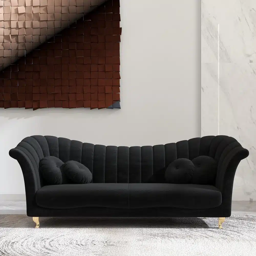 لونارا كنبة مخملية سوداء 3 مقاعد وأرجل ذهبية فاخرة