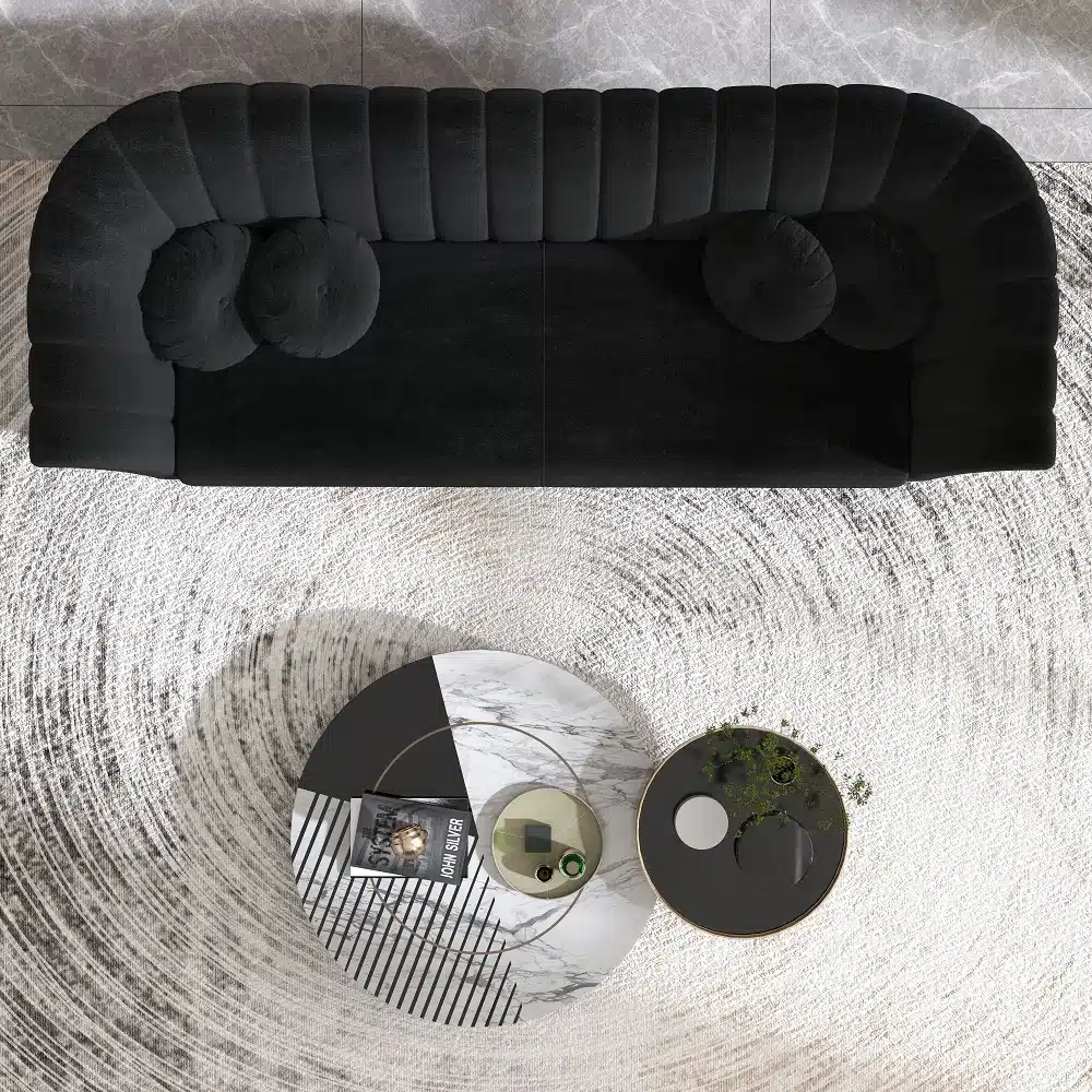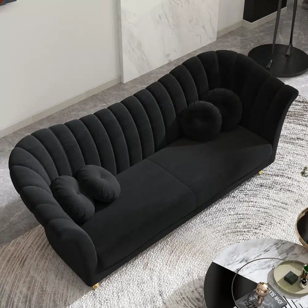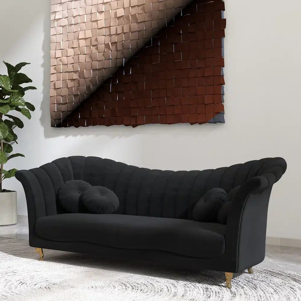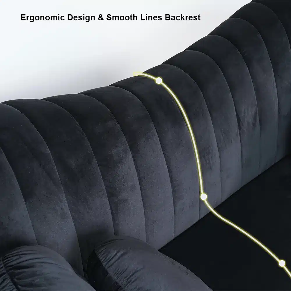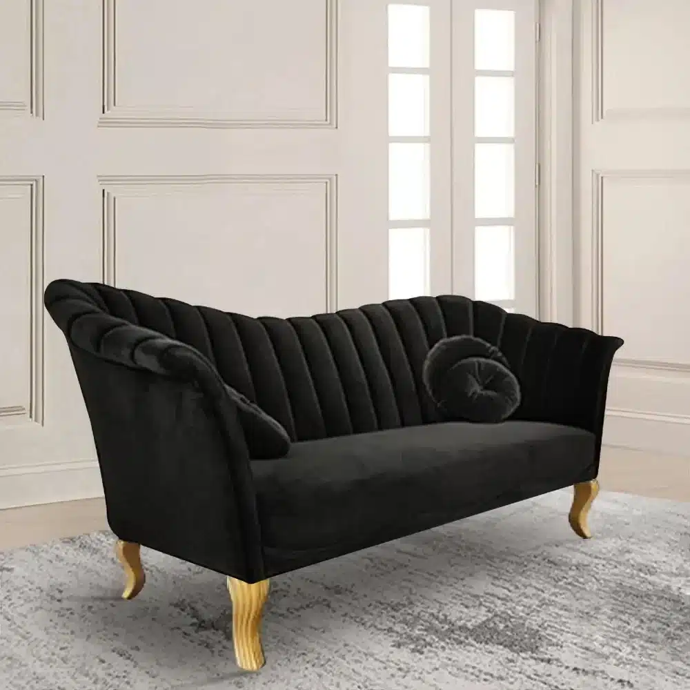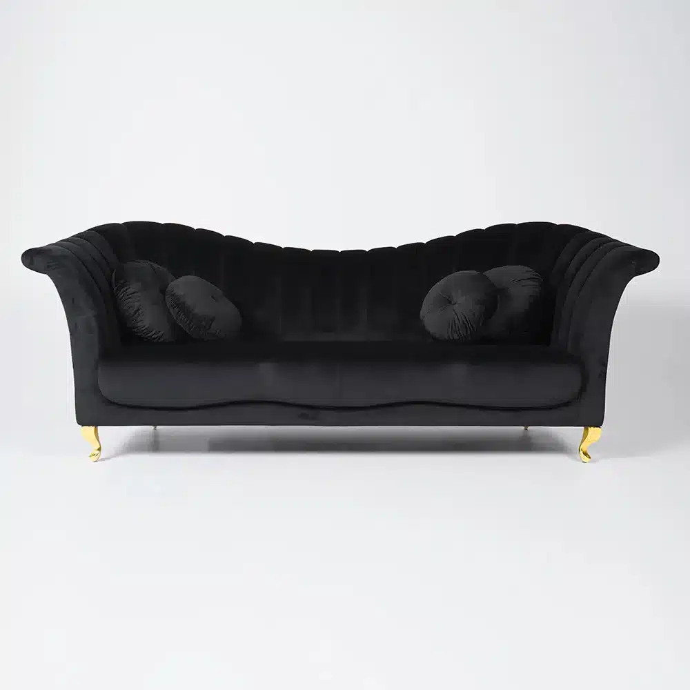 مميزات لونارا كنبة مخملية سوداء 3 مقاعد وأرجل ذهبية فاخرة