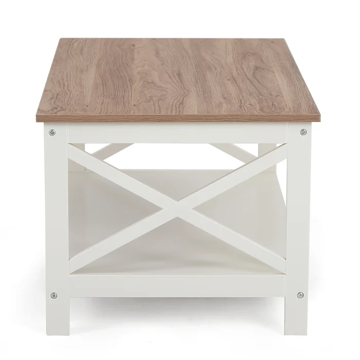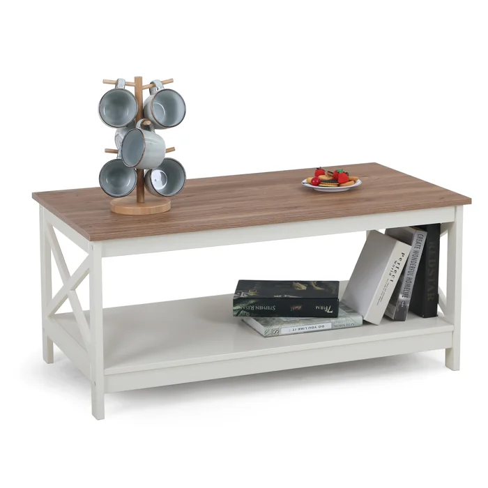 - مساحة تخزين إضافية:تحتوي الطاولة على رف سفلي لحفظ المجلات، الكتب أو سلات التخزين، مما يساعد في الحفاظ على ترتيب المساحة.