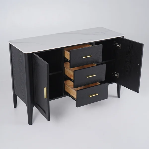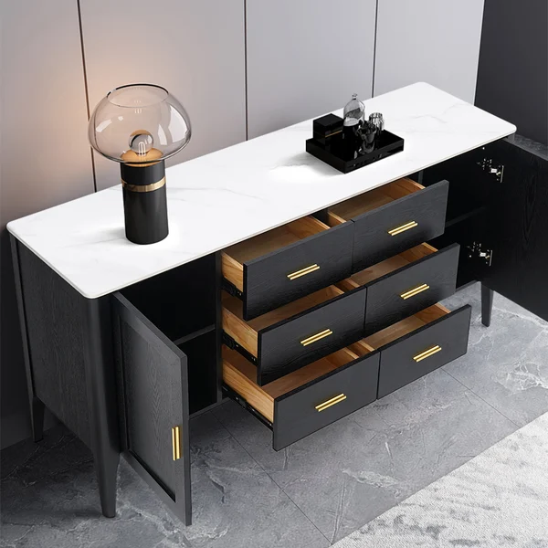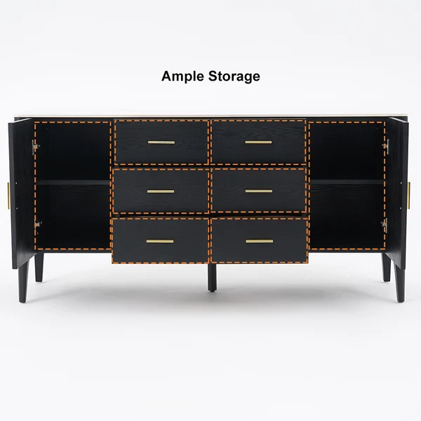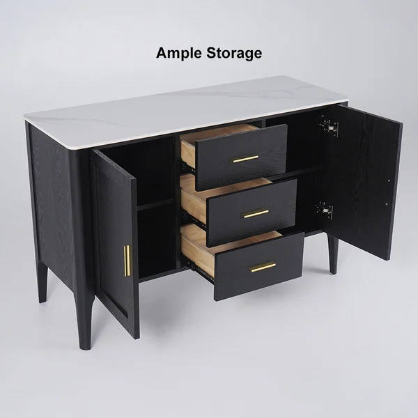 احصل على هذا بوفيه لإضافة مظهر عصري مثير للاهتمام. تحتوي على بابين وثلاثة أدراج ورفين لتخزين أدوات الطبخ. بالإضافة إلى ذلك، يحتوي هذا البوفيه الجانبي على مساحة عرض كبيرة. اذا كنت تبحث عن شيء يمكن استخدامه في منطقة تناول الطعام الخاصة بك بالإضافة إلى أماكن أخرى فا هذا يناسب لك.