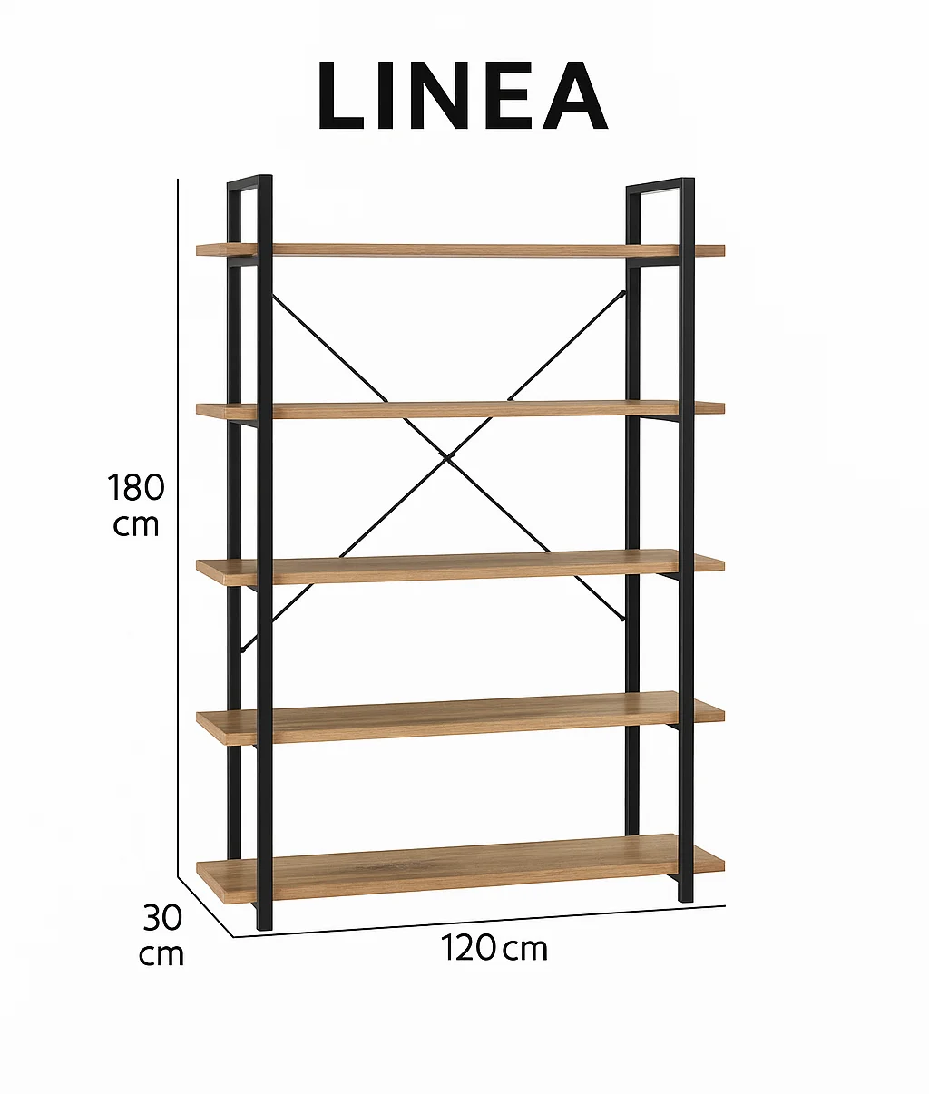 تتميز بخمسة أرفف من الخشب الطبيعي المتين بإطار معدني أسود مطفي يمنحها ثبات وأناقة عصرية.