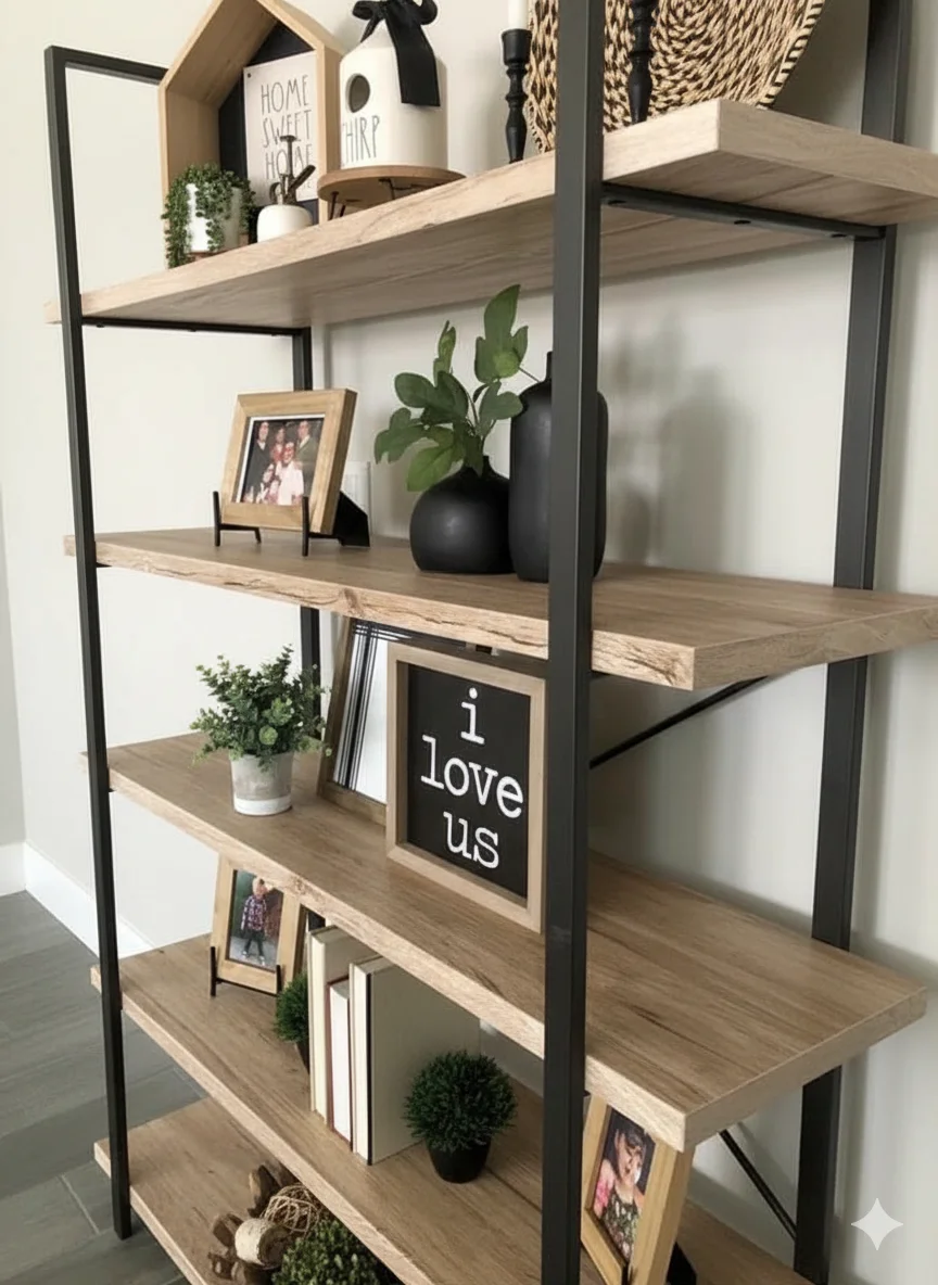 تصميمها العملي يجعلها مثالية لعرض الديكورات، الصور، الكتب، والنباتات في أي مساحة.