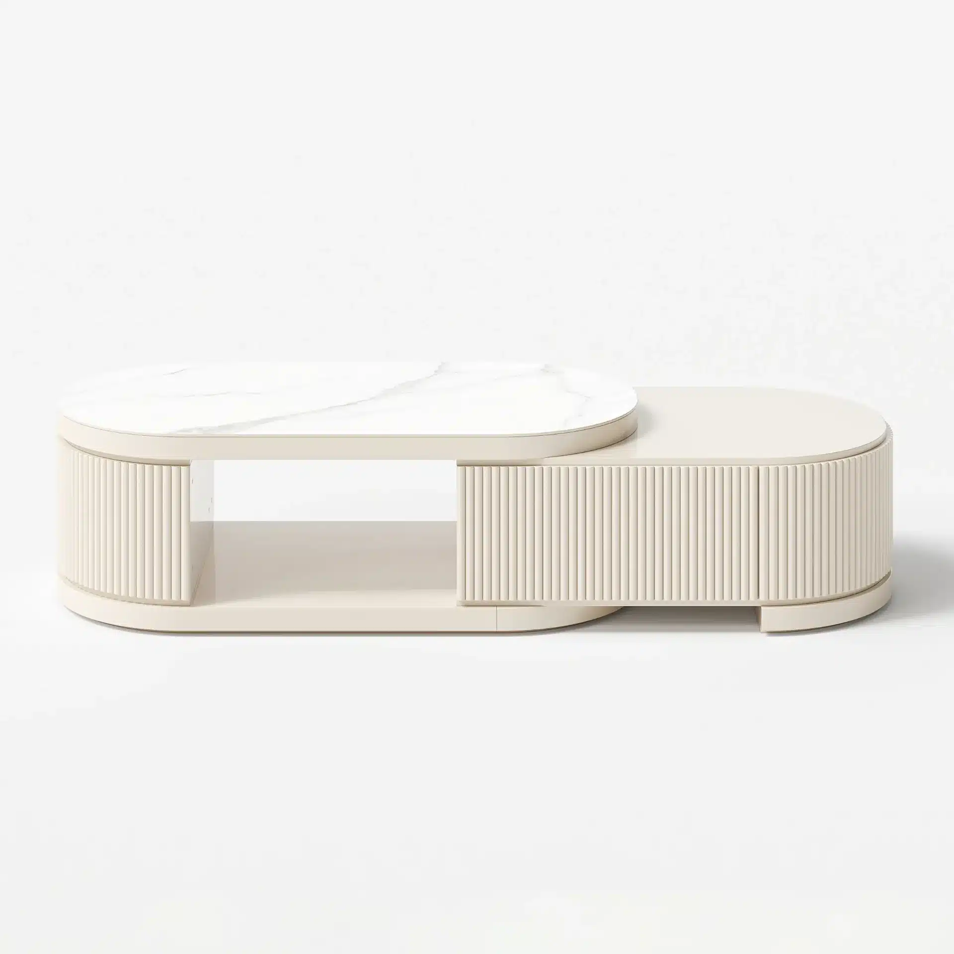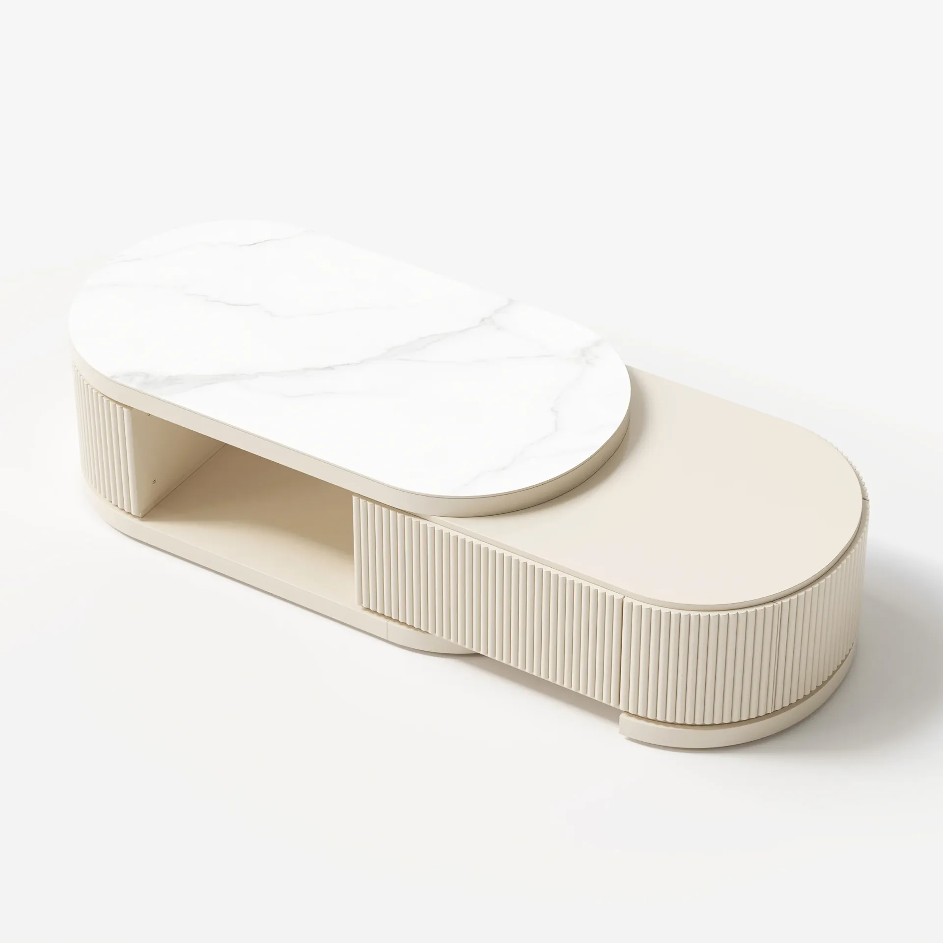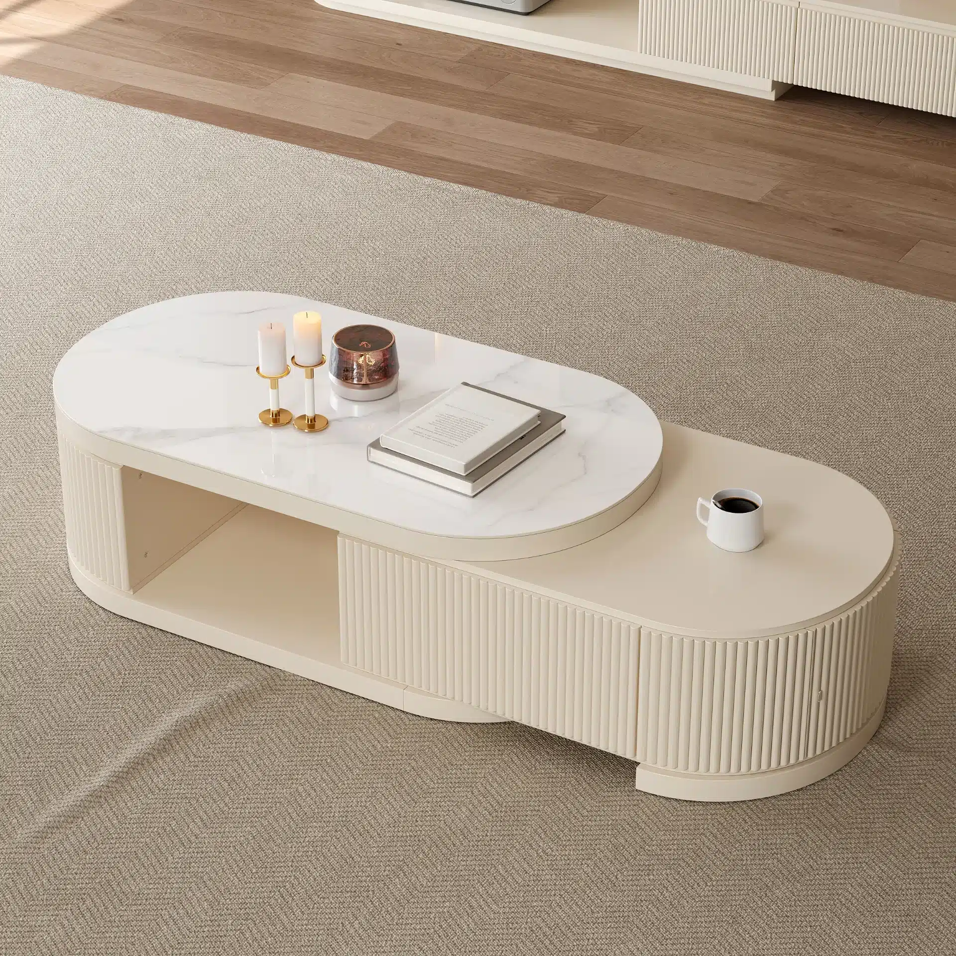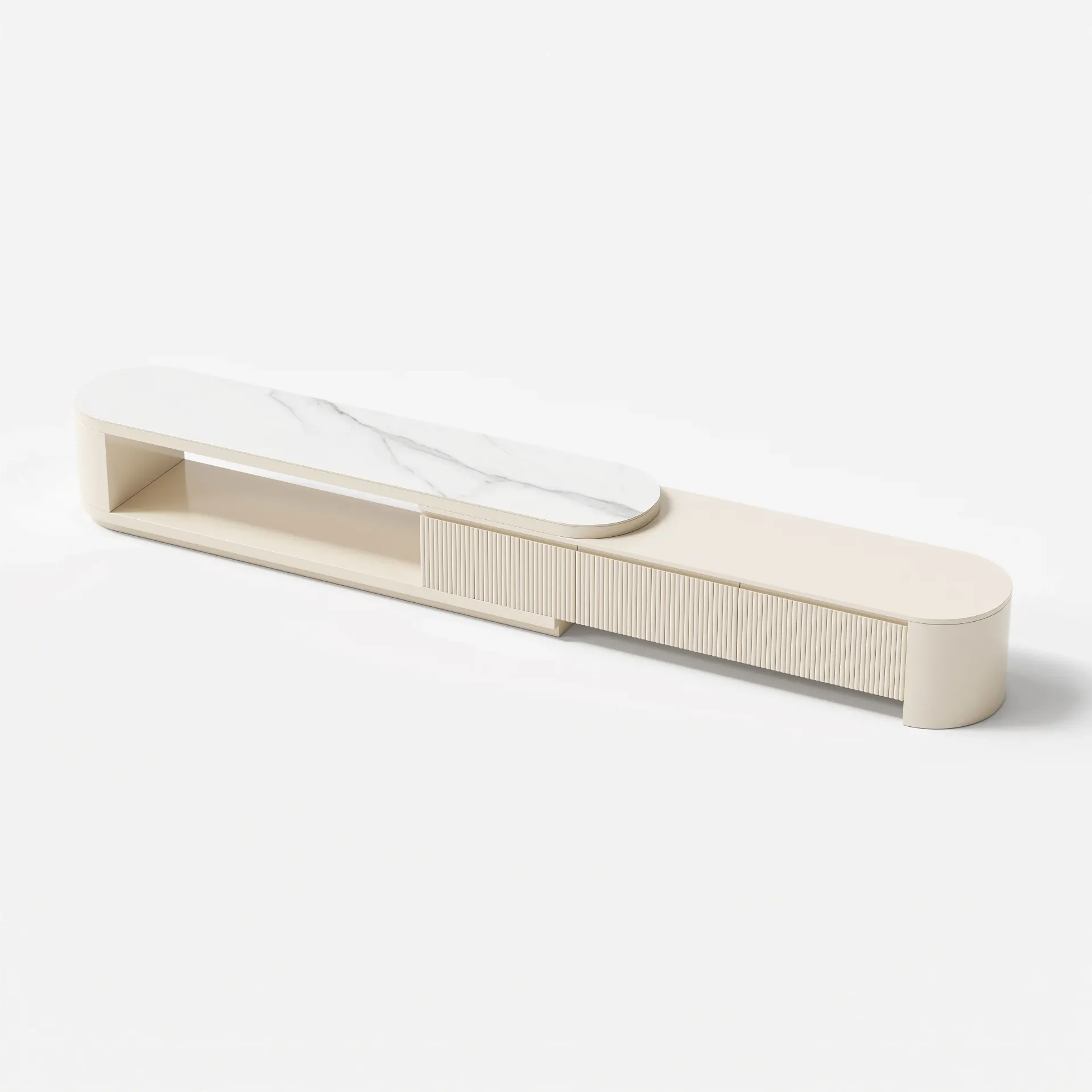 مميزات ليڤانتو طقم وحدة تلفزيون وطاولة قهوة بسطح بديل الرخام قابل للتمديد